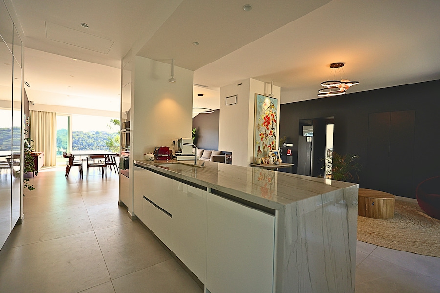 From the entrance, you are welcomed by generous volumes and abundant natural light throughout the living spaces. The villa is largely laid out on one level, ensuring a smooth and comfortable flow.