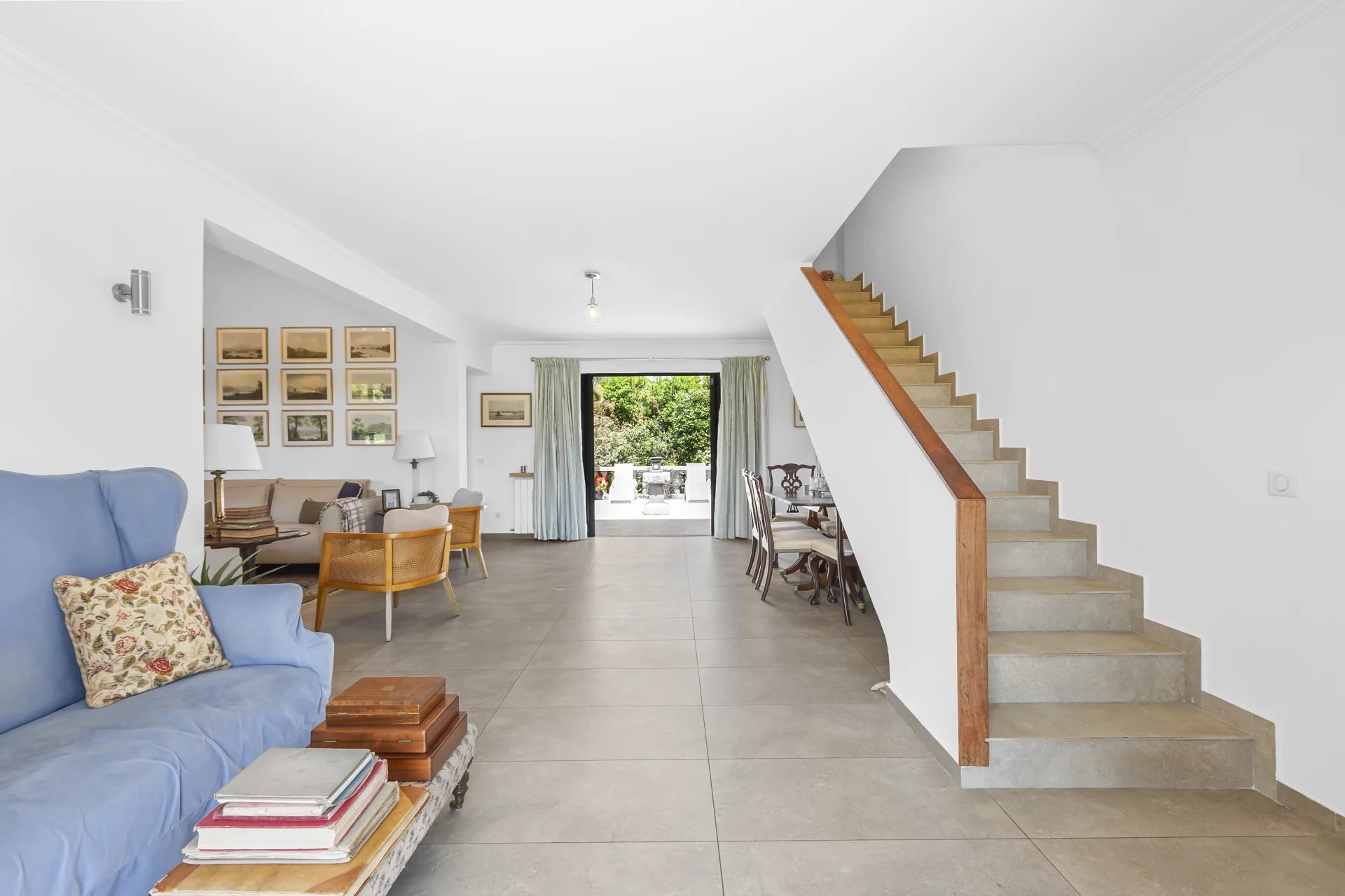 Inside, the villa boasts 6 bedrooms and 5 bathrooms – 2 bedrooms on garden level, 2 on entrance level, including a master suite with sitting room and two bedrooms upstairs. A very practical laundry room is located near the kitchen.