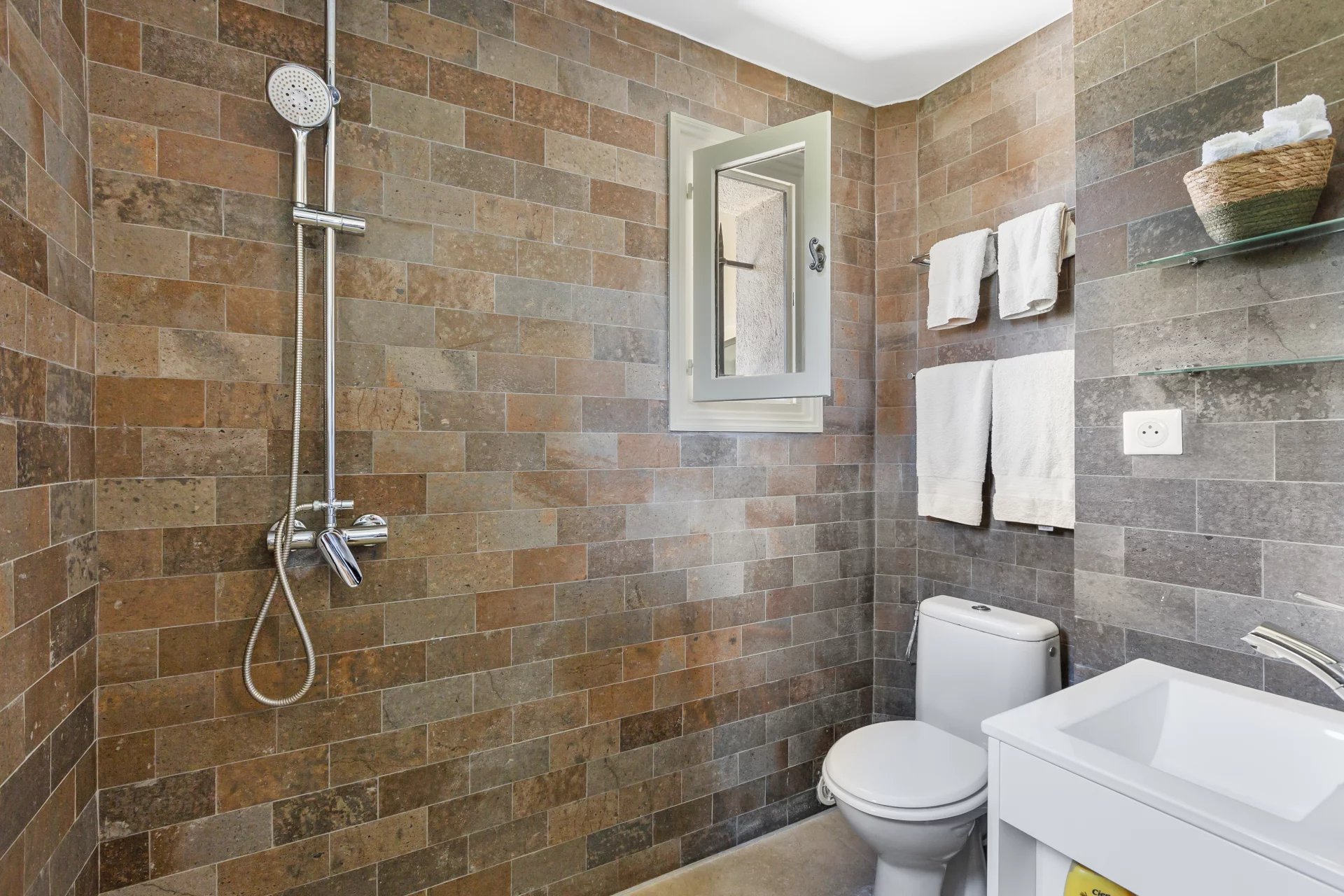 Renovated to a very high standard the villa has a living room with vaulted ceilings, dining room and kitchen that all lead out to the pool terrace. Two covered terraces, each with vaulted ceilings, provide cosy outdoor entertaining spaces and give much needed shade for relaxing with friends and outdoor dining.