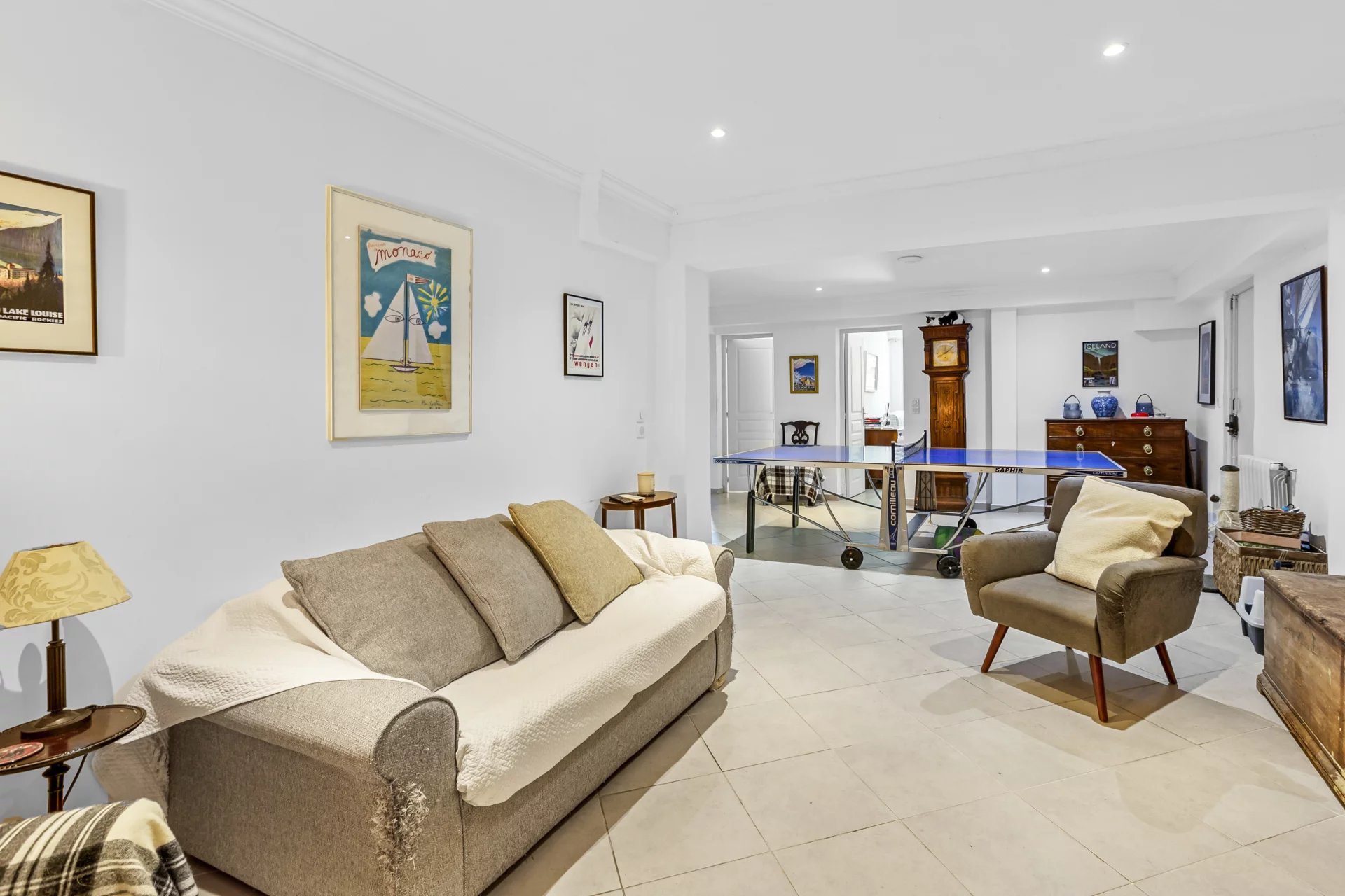At garden level there is a large games room/tv room and a very spacious garage (58 m2) with gym and office area.