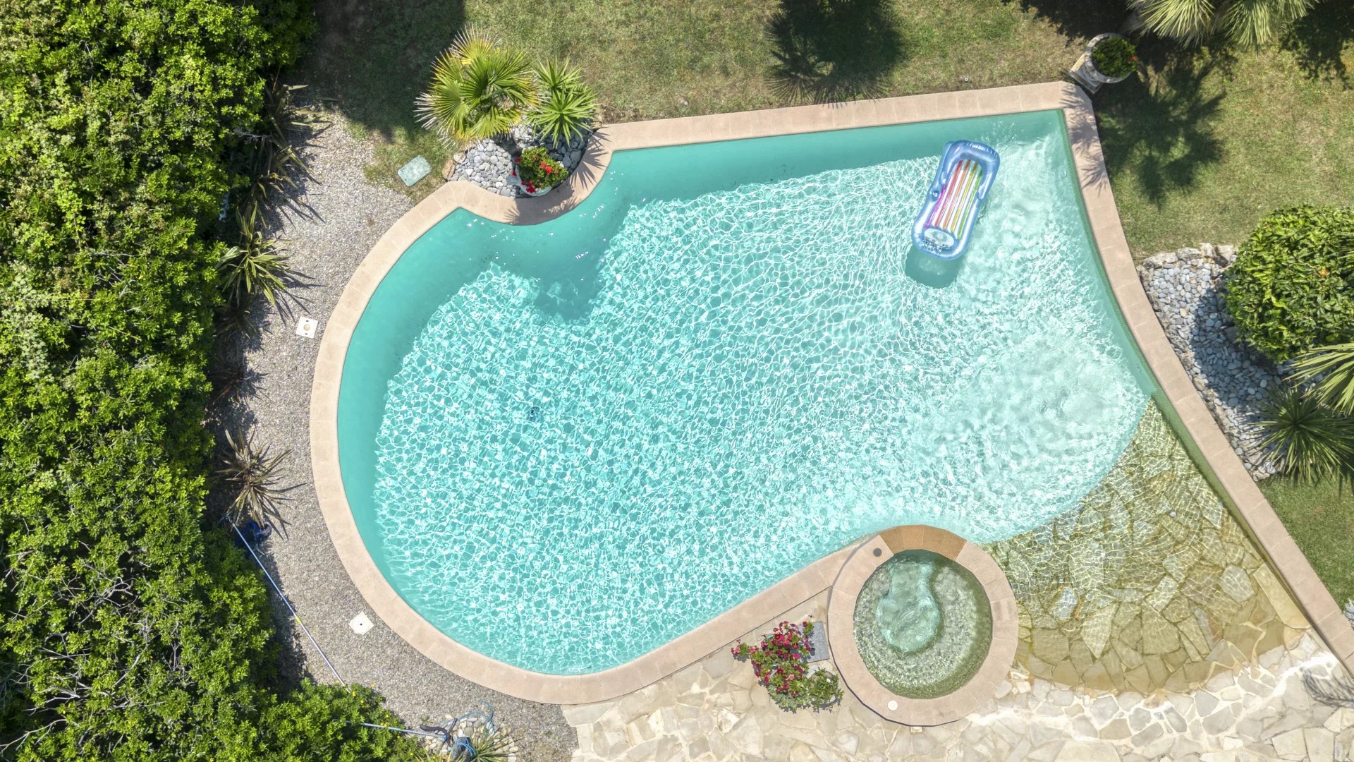 The south facing garden and pool sit on top of a small hill which allows for beautiful views of the surrounding hills and mountains in each direction. There is even a glimpse of the sea from parts of the garden and from the upstairs bedrooms. The north side of the house also has a large terrace which is excellent for escaping the summer sun and a view that reaches to the mountains of Italy.