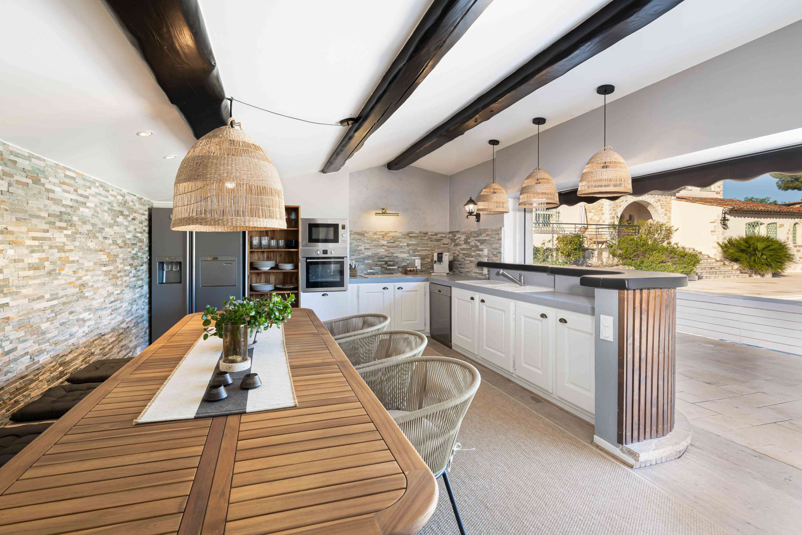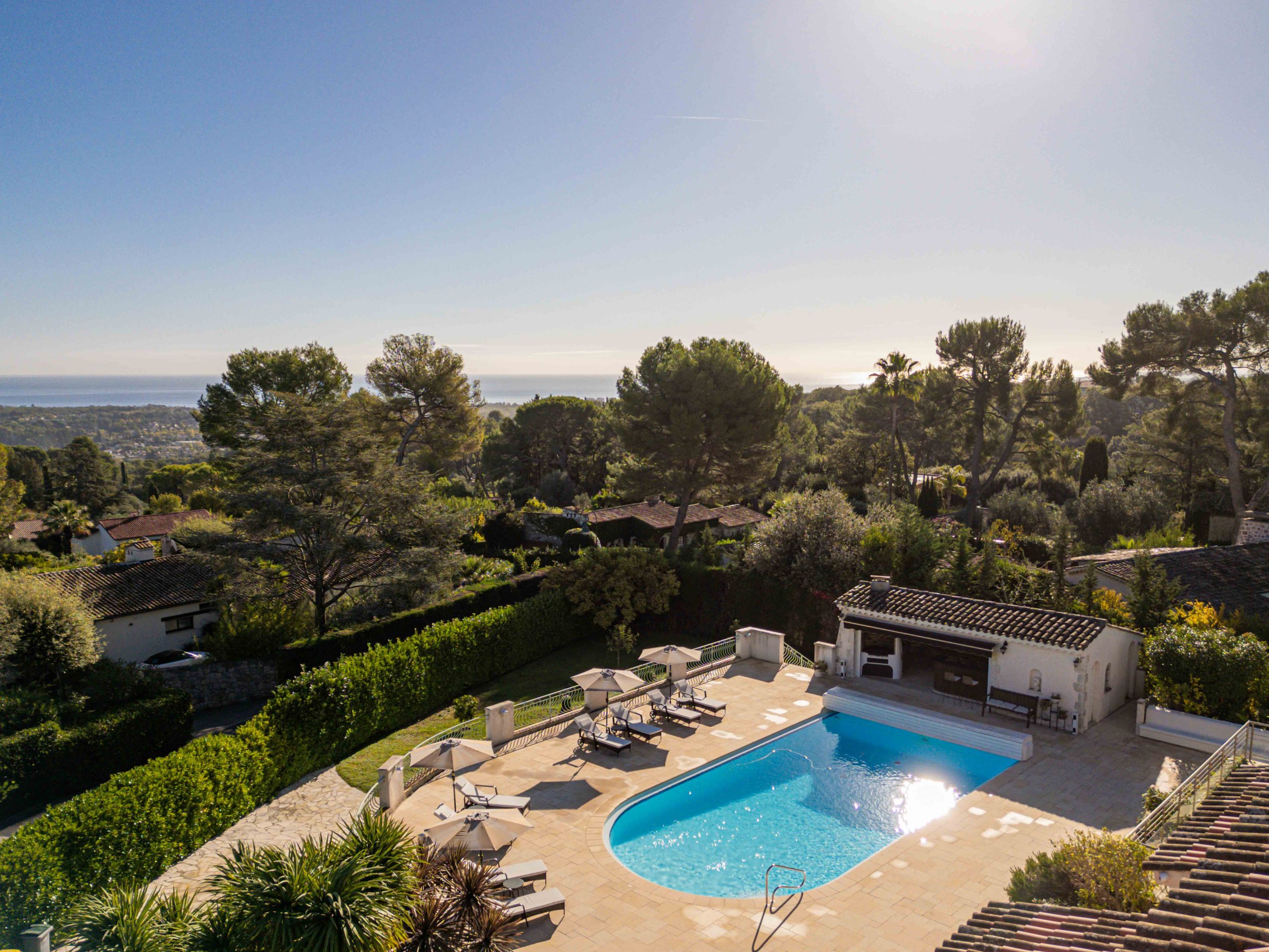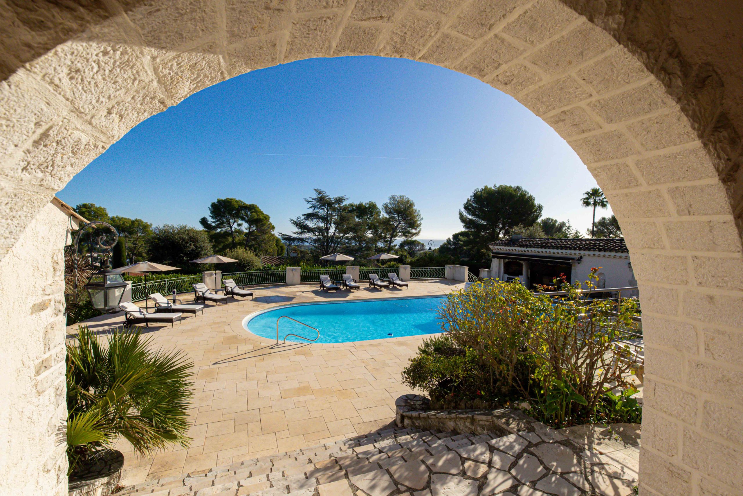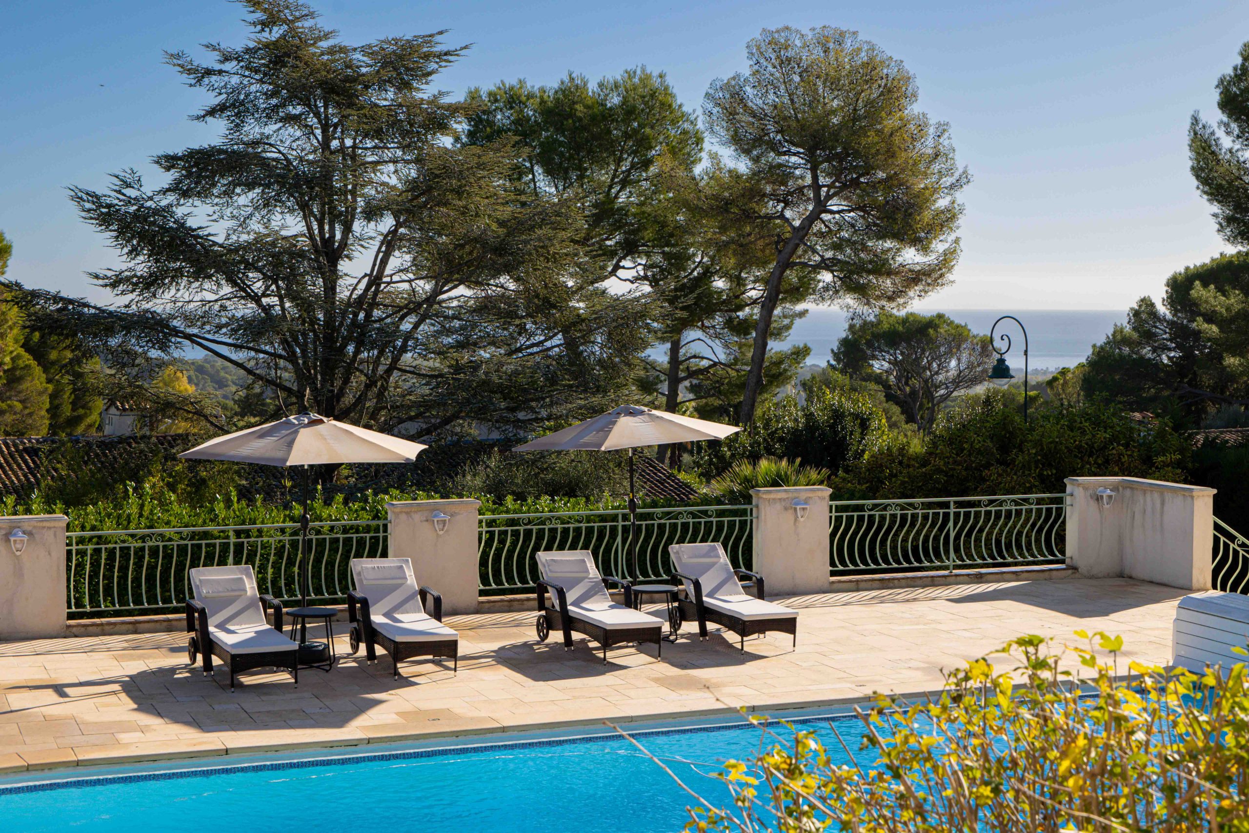 The property stands in landscaped grounds of more than half an acre where you can find lawned areas, terraces, boules court, covered car ports and plenty of parking. There is a magnificent sunbathing terrace with large swimming pool, superb, fully equipped and totally renovated pool house, all taking in those incredible views. Due to the elevated location, the property is sunny all day long.