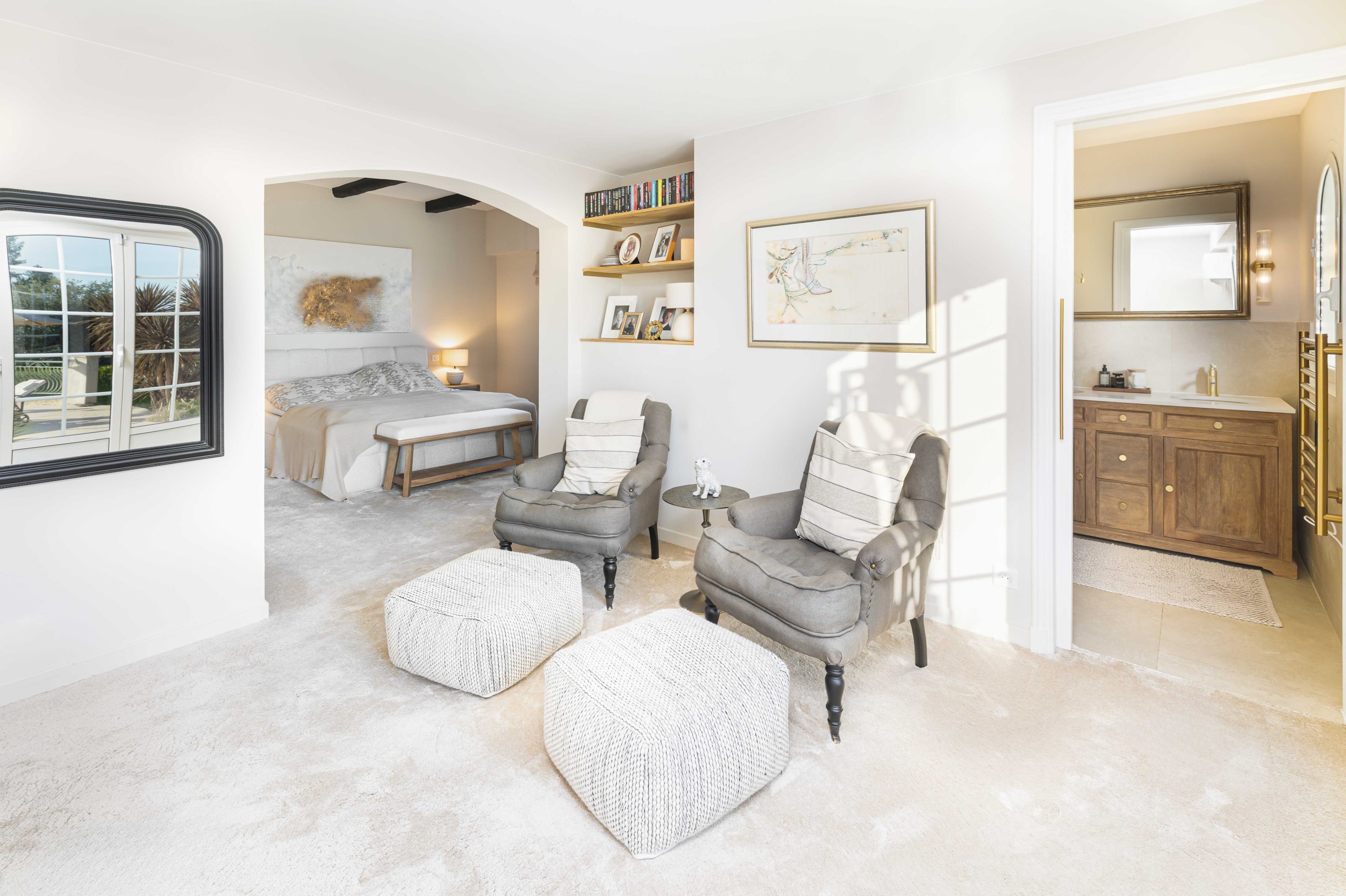 Offering more than 300m2 of beautifully presented living space which includes a spacious living and dining room with open fireplace and high beamed ceilings, breakfast room, large and newly fitted state of the art kitchen with hidden pantry, 4 bedrooms, 4 bathrooms and guest WC in the main house (including a beautiful master suite), there is also an office plus a huge dressing room which offers the chance to create a 5th bedroom suite if required. There is a laundry room and an adjoining, equipped gym.