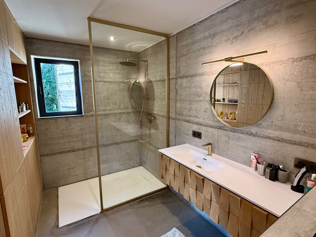 Plenty of parking is available on the property. The exteriors seduce with a heated swimming pool of 13.5 x 4.5 m with pool house and relaxation areas in the sun. Modern features include underfloor heating via a heat pump, solar panels for electricity generation, both spring and city water supply, and a home automation system for optimal daily comfort.