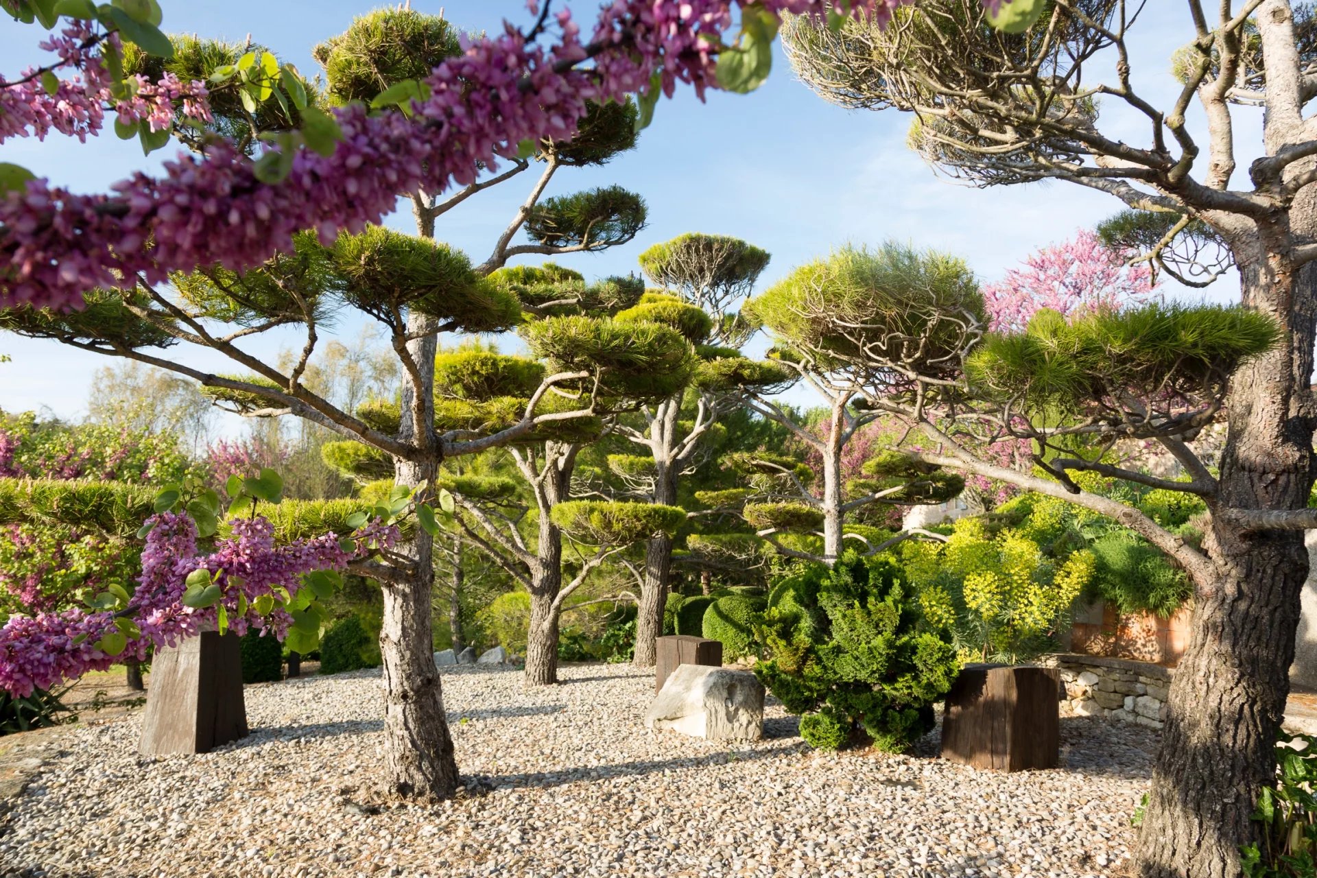 The 7-hectare park seems to extend endlessly towards the wooded hills of the Luberon Natural Park and the plain below.
