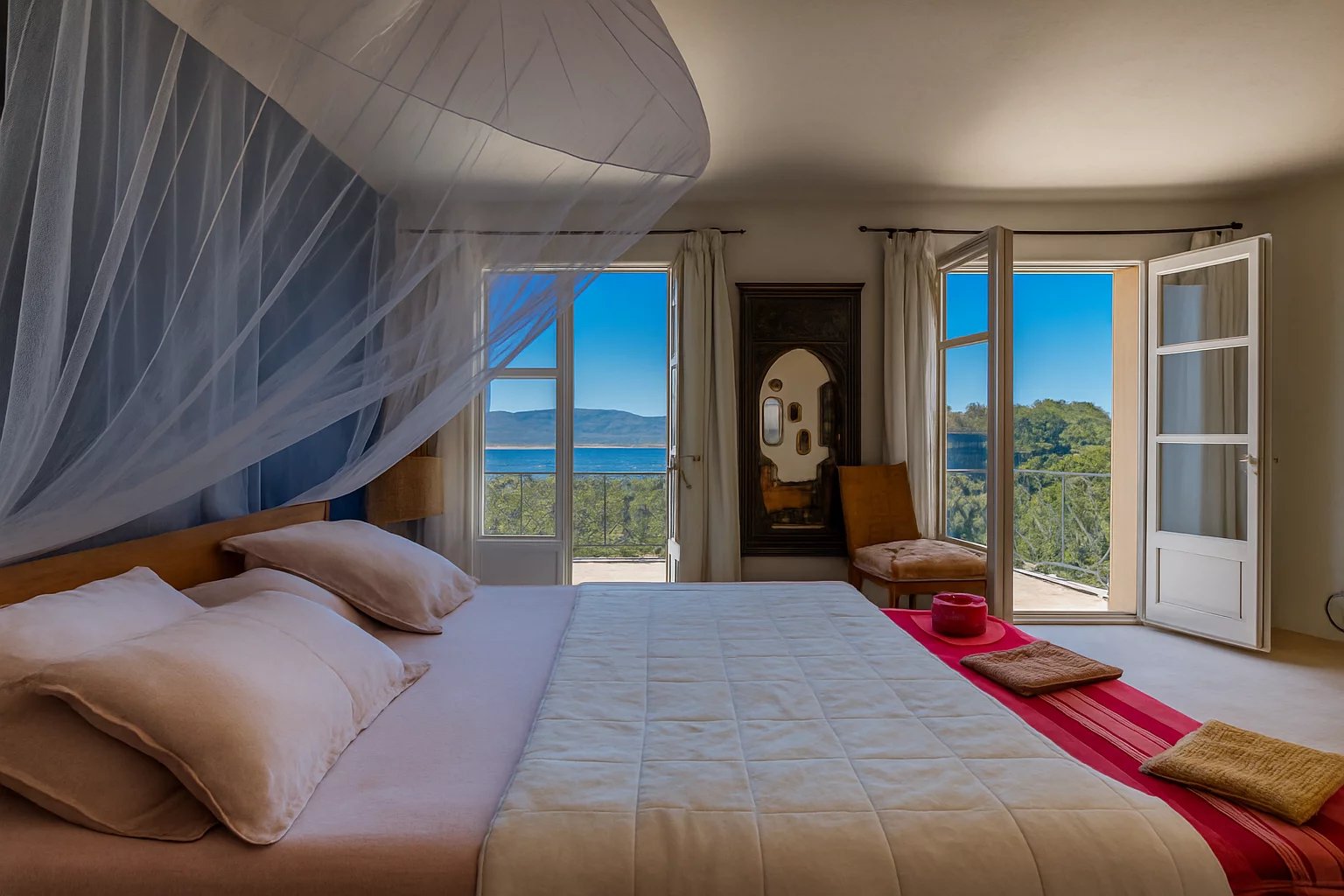 The night quarters include two en-suite bedrooms with direct access to the pool terrace, two further bedrooms in a quieter part of the villa, and two independent guest suites, allowing each guest to enjoy privacy and comfort.