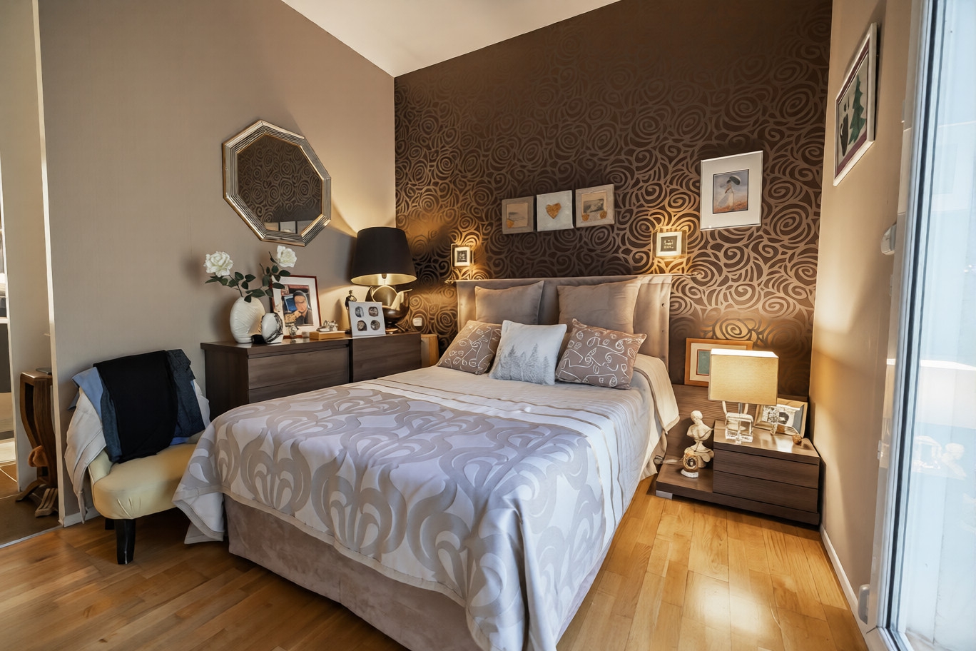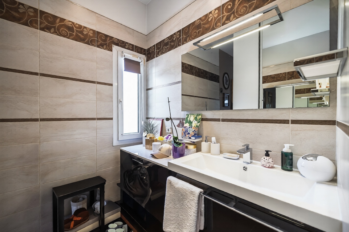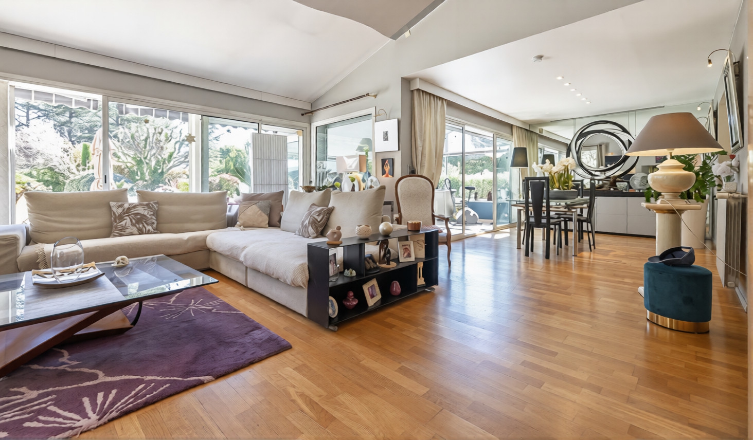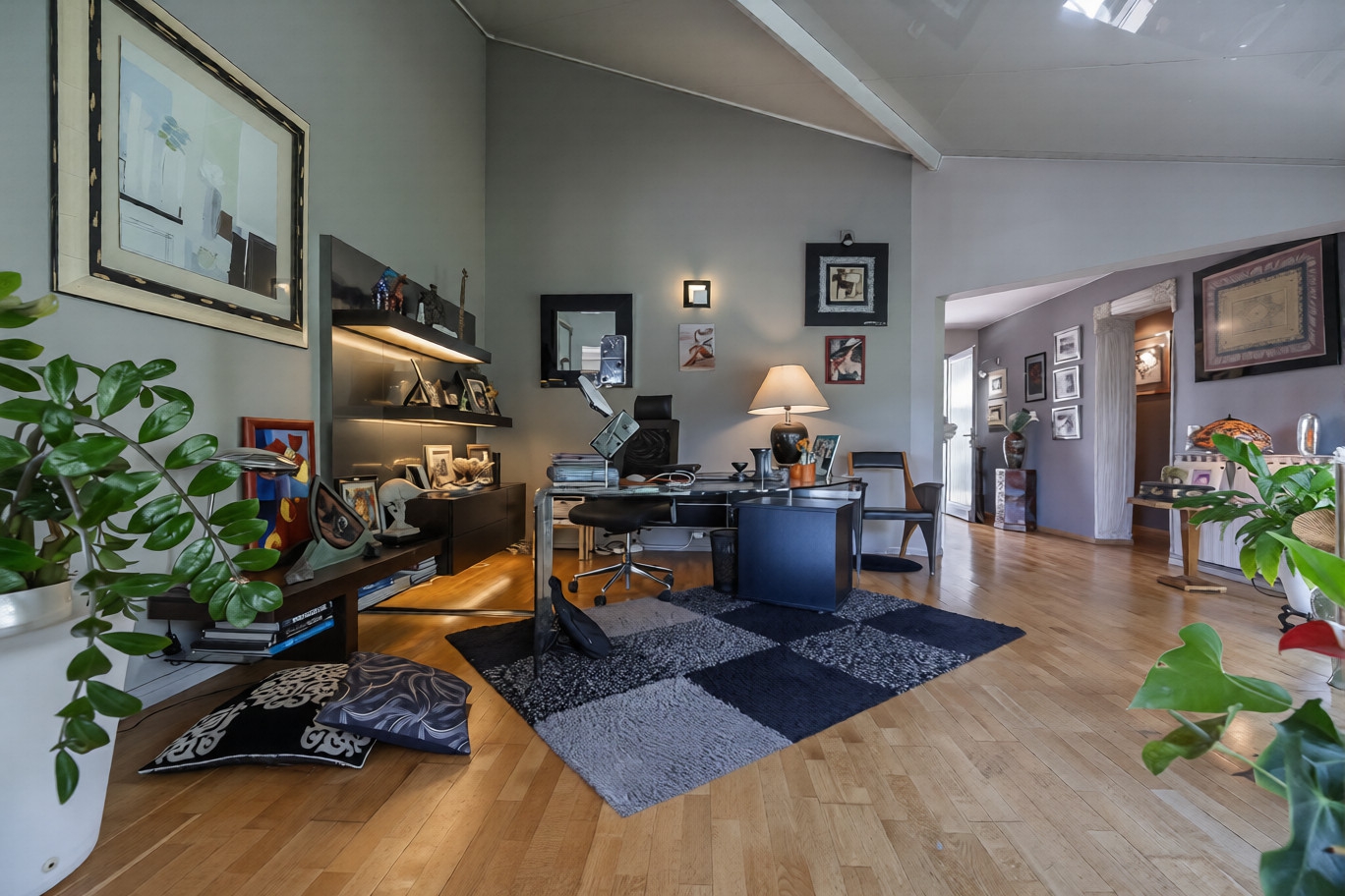 The sleeping area offers: two bedrooms, including a master suite with an en-suite shower room and access to a private terrace a 25 m2 bedroom can be reconstituted with a simple partition to create its original layout as two separate bedrooms and a bathroom. A gym with independent exterior access offers the possibility of creating a fourth bedroom.
