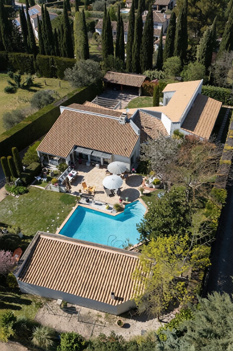 The 60 m2 pool house, equipped with a kitchen and shower, could be converted into an independent studio, an ideal annex for private entertaining, or for rental purposes.