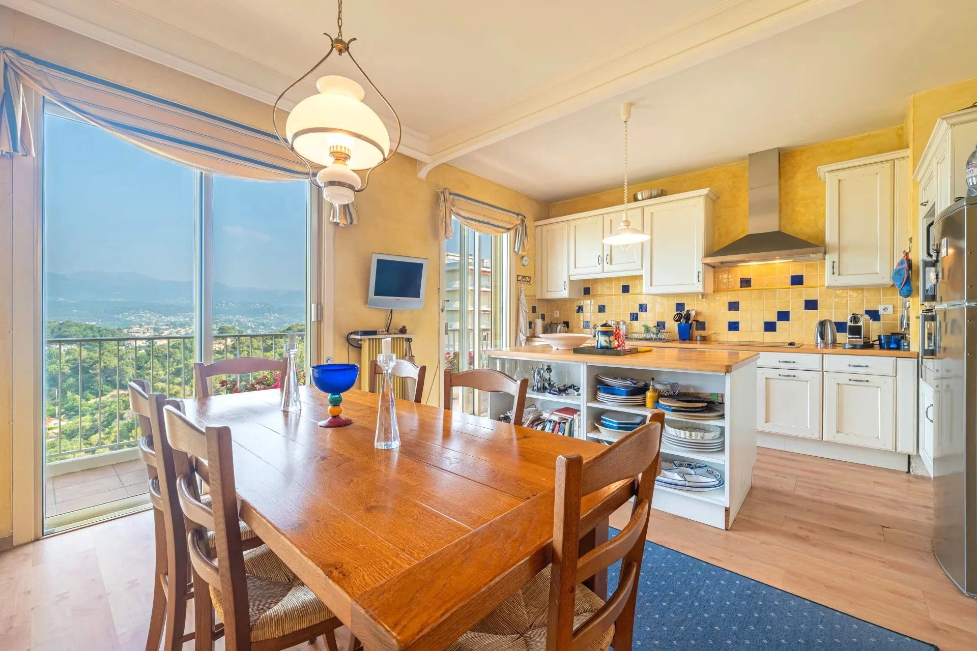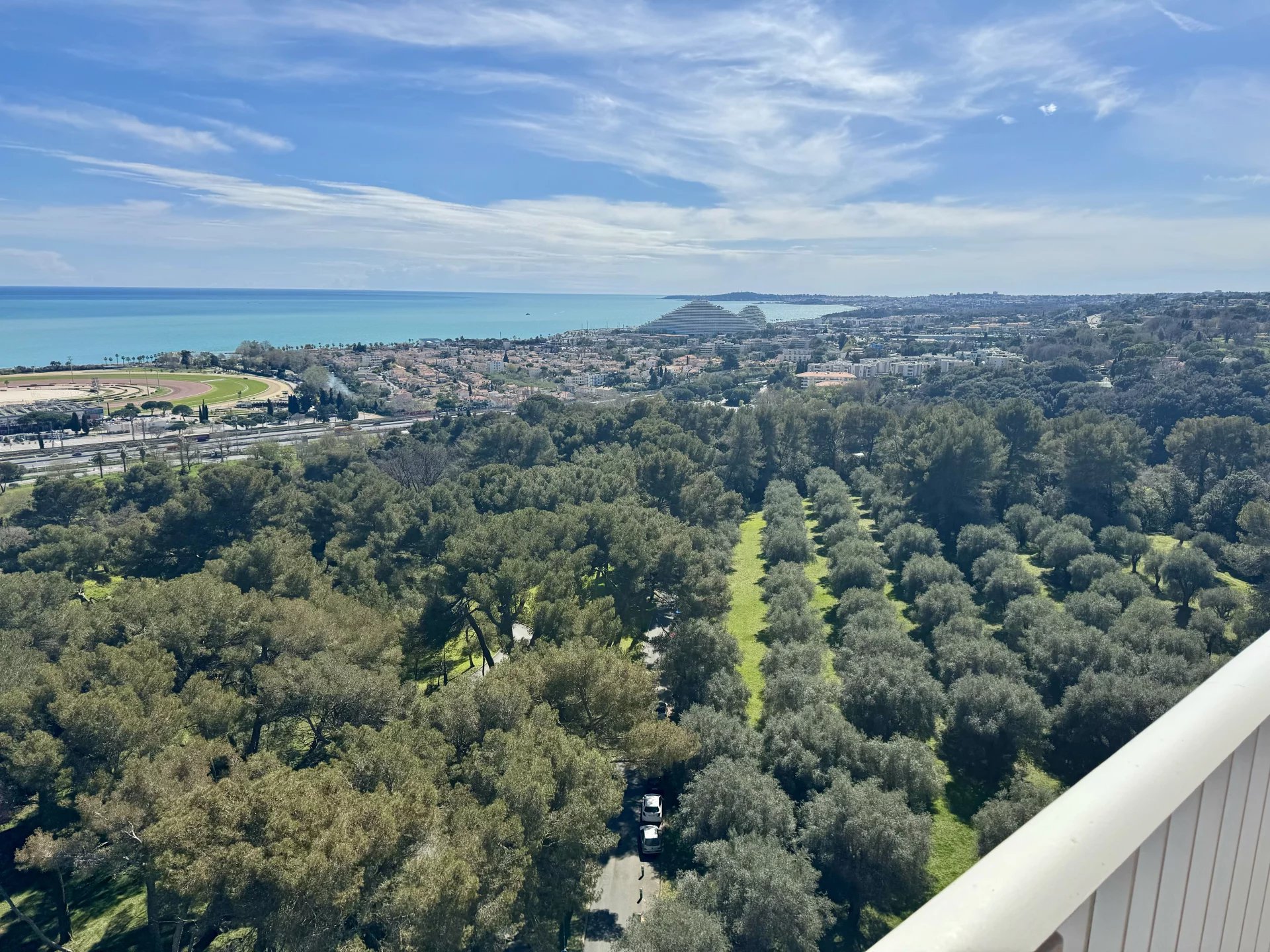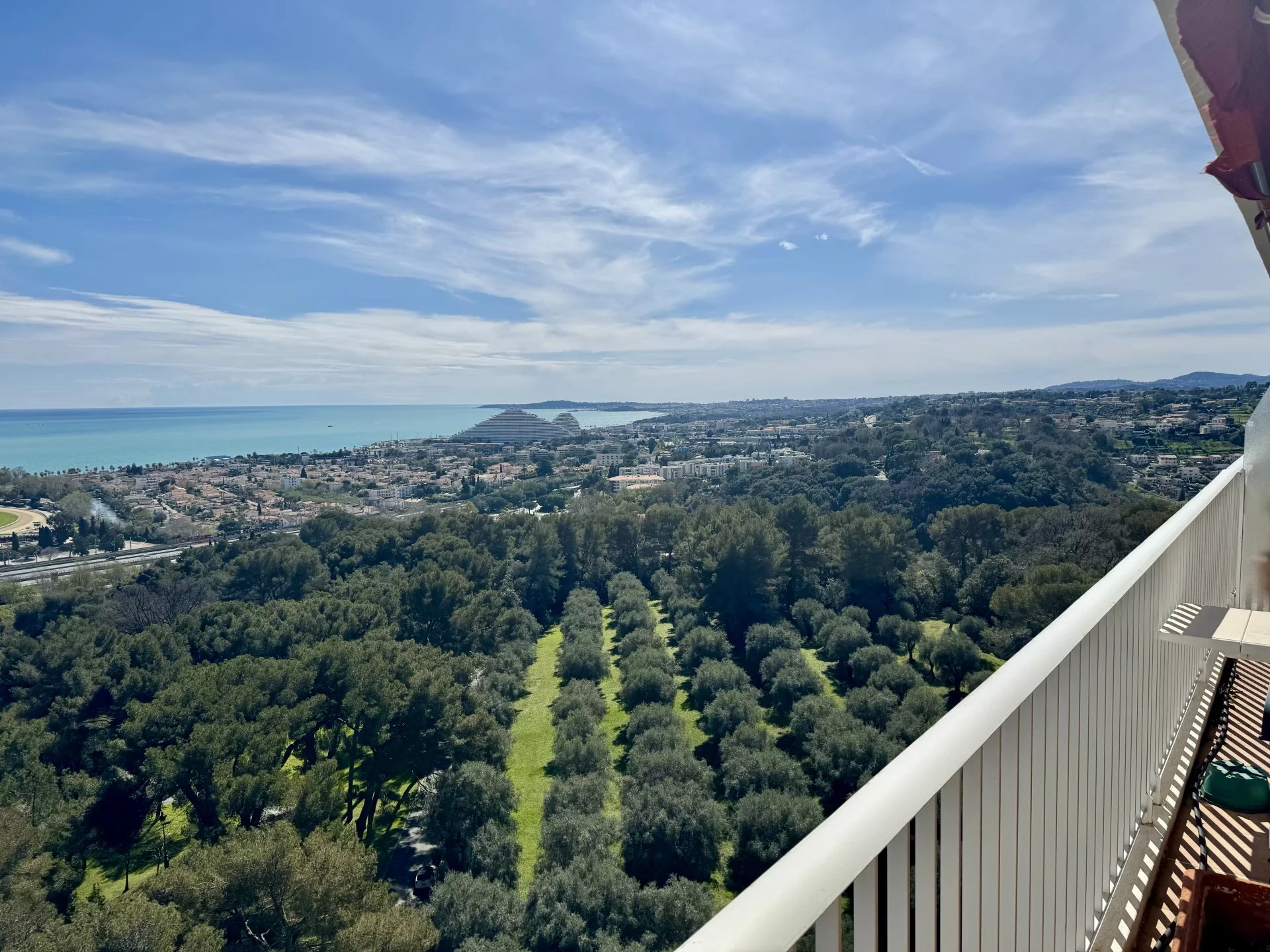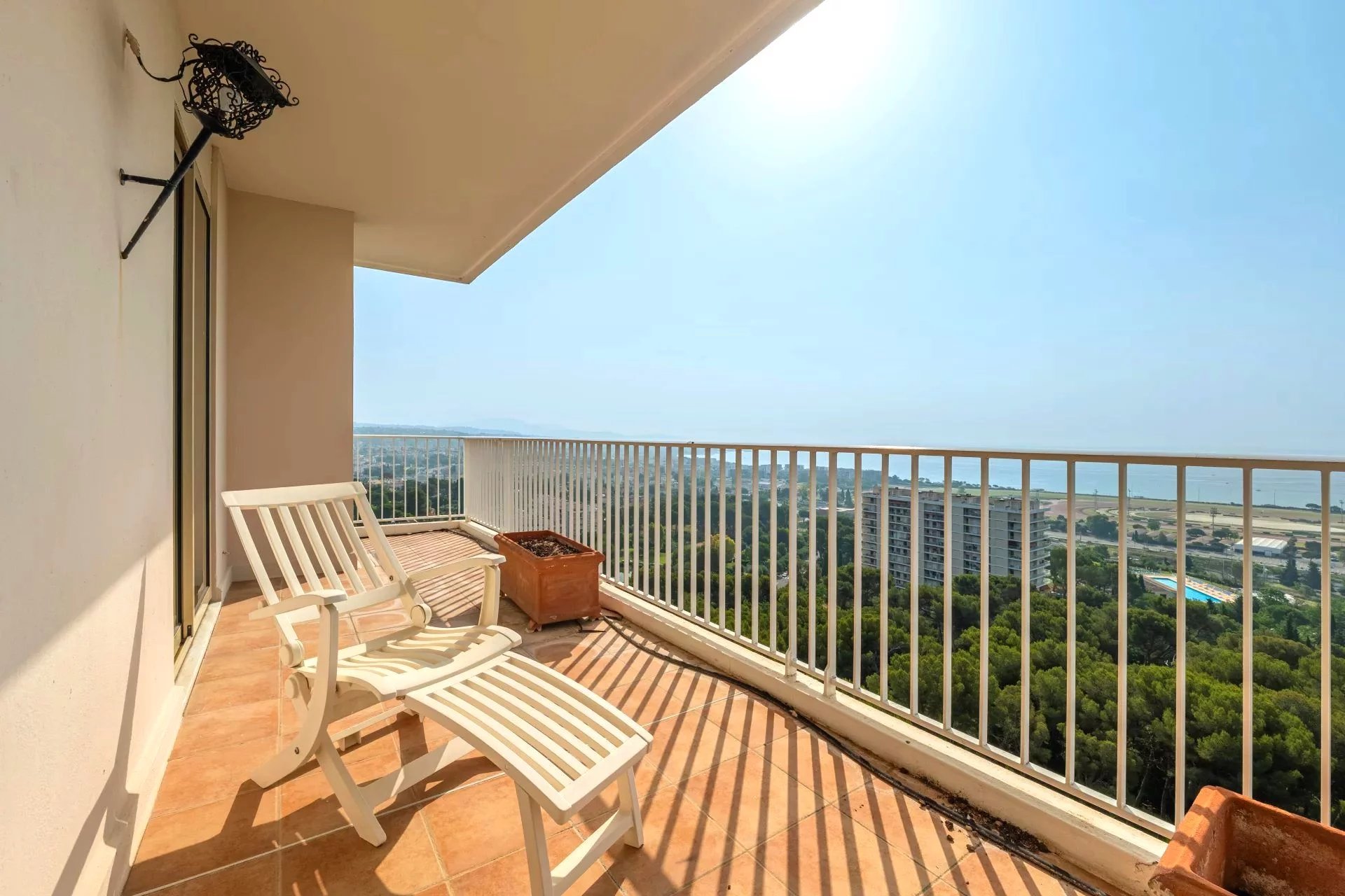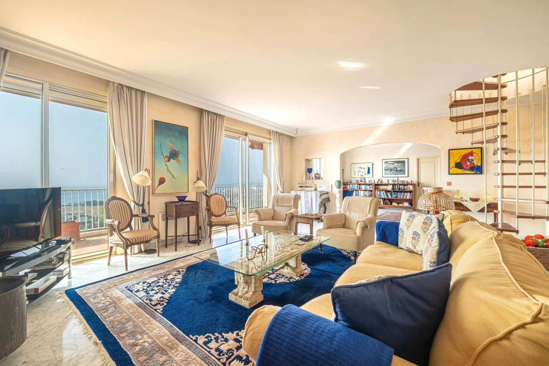 Located on the 13th and 14th floors – the top floors – of a well-known residence, this through-layout duplex penthouse stands out with its literally breathtaking almost 360 degree view of the Mediterranean, the surrounding hills, and as far as the Esterel mountains.
