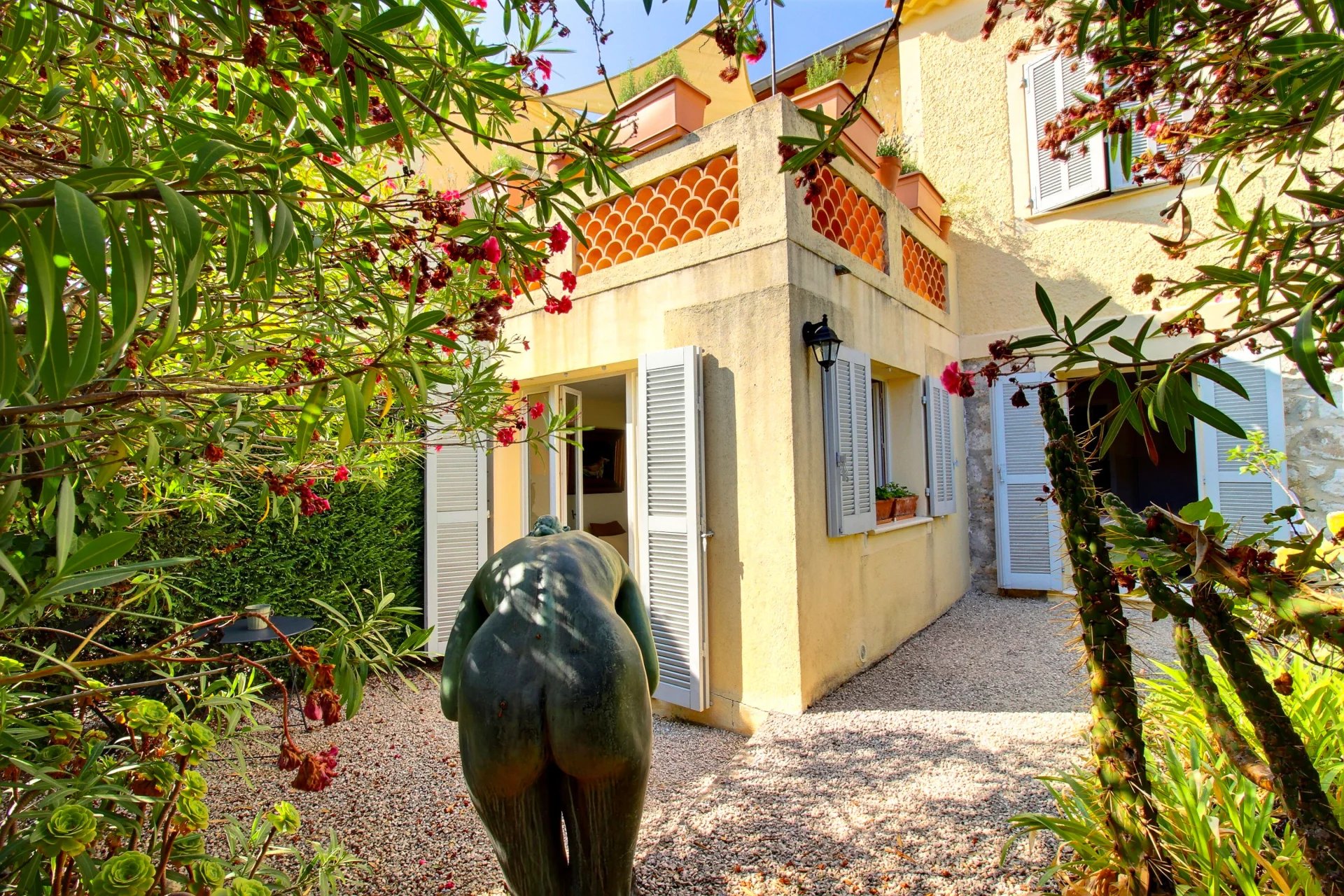 Both the house and the land enjoy an unobstructed view extending to the medieval village of Cagnes-sur-Mer.