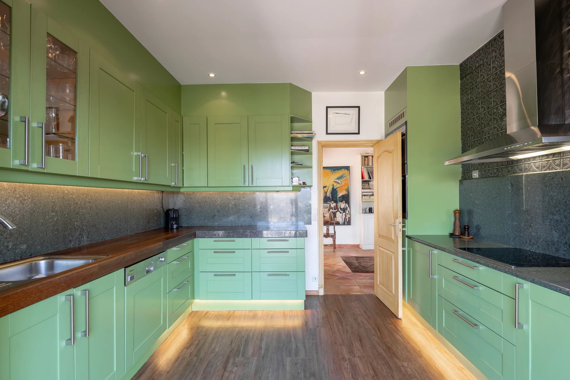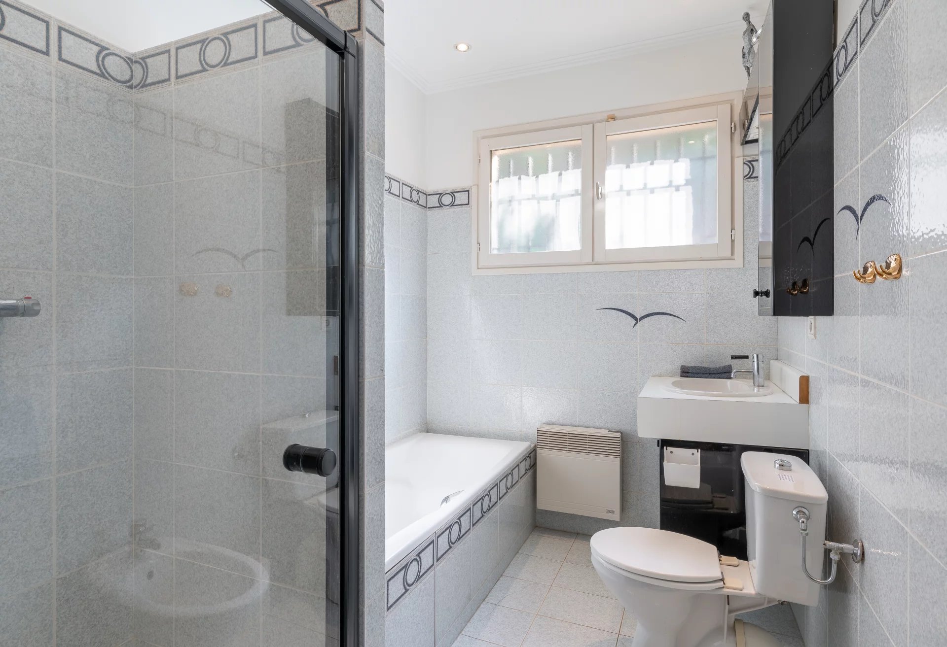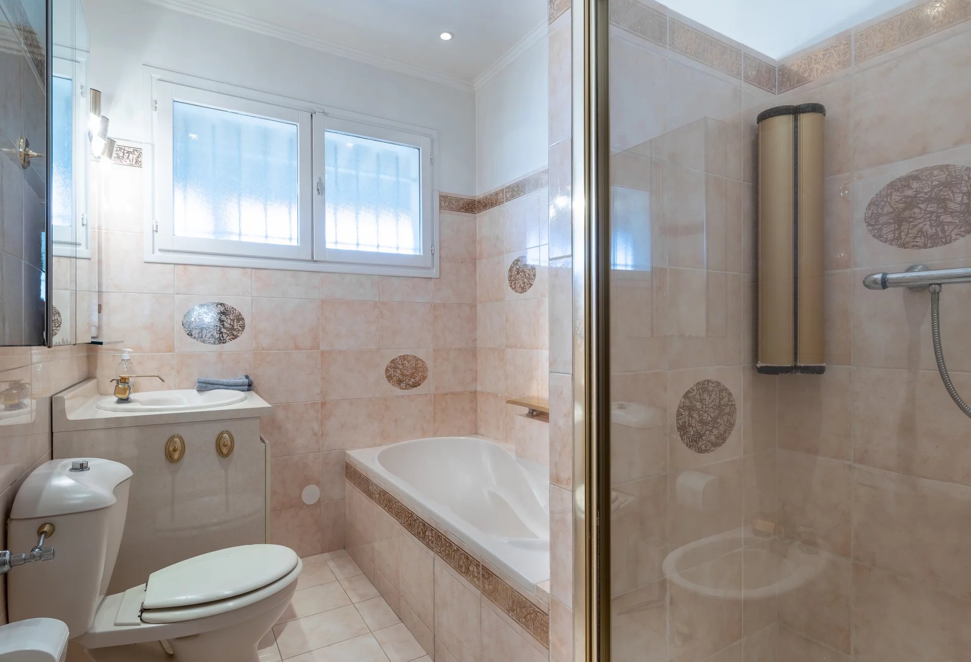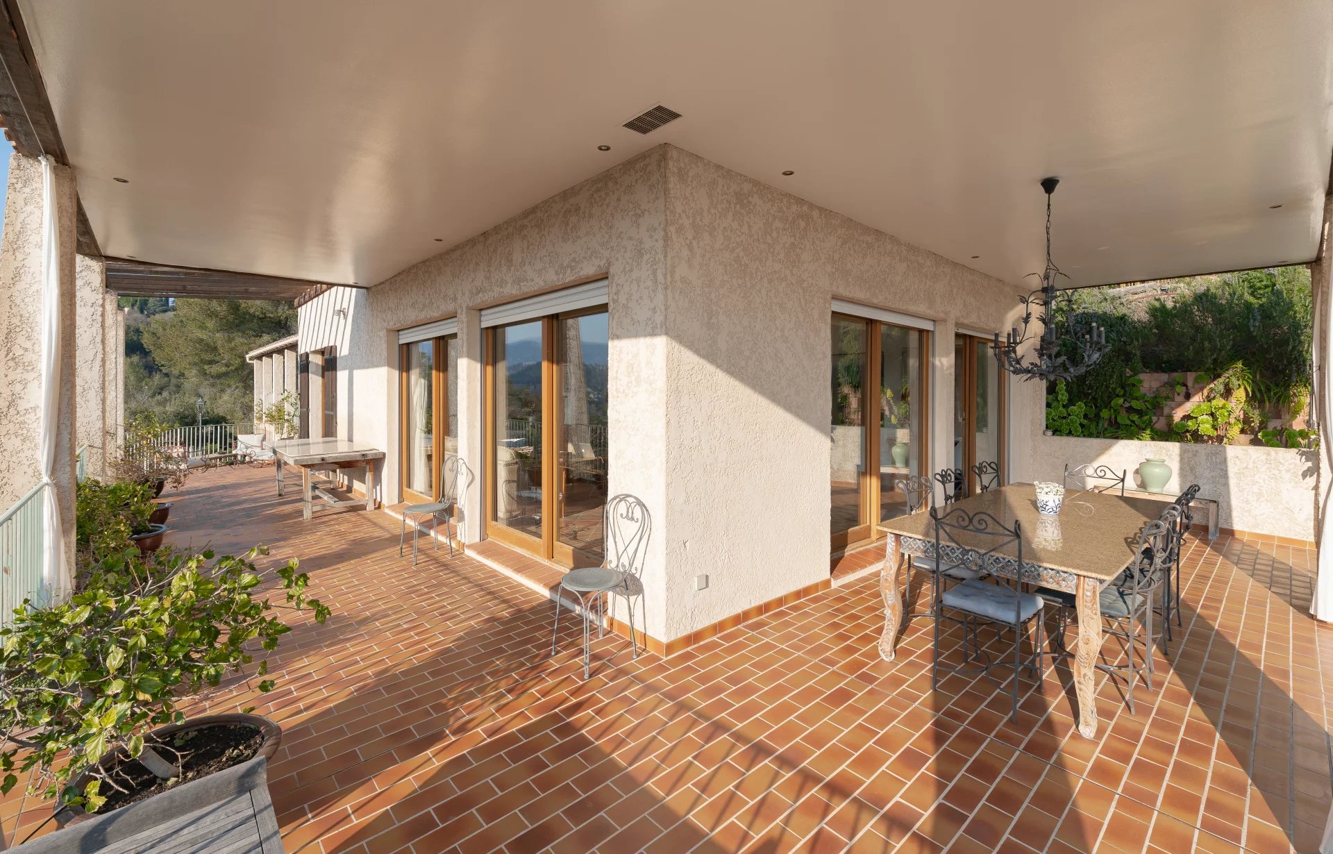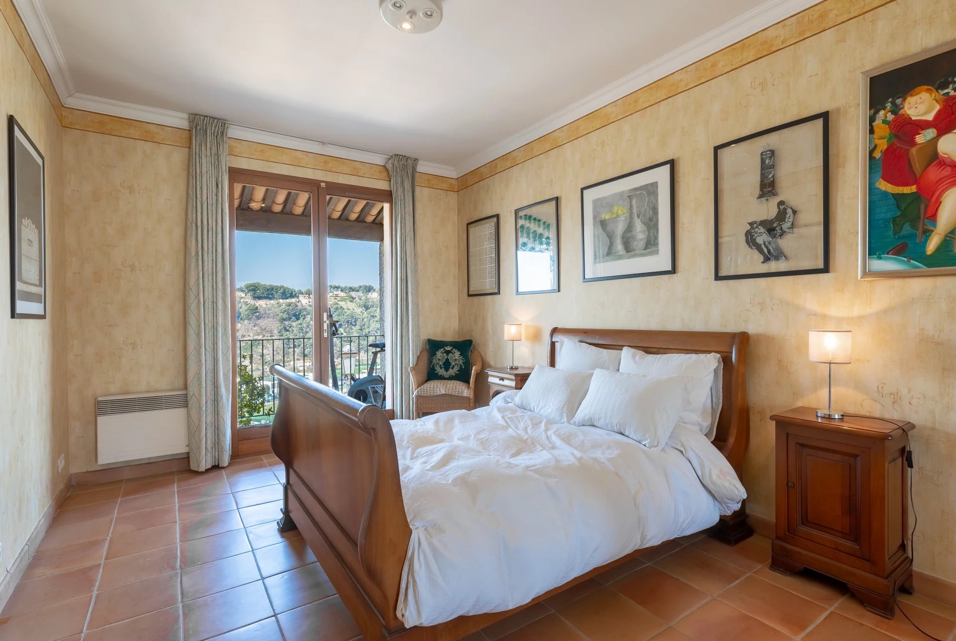 Two of the bedrooms have access to covered terraces overlooking the mountains and Haut de Cagnes. One bedroom is facing mountain view while the other looks onto the garden. All bedrooms have spacious wardrobes.