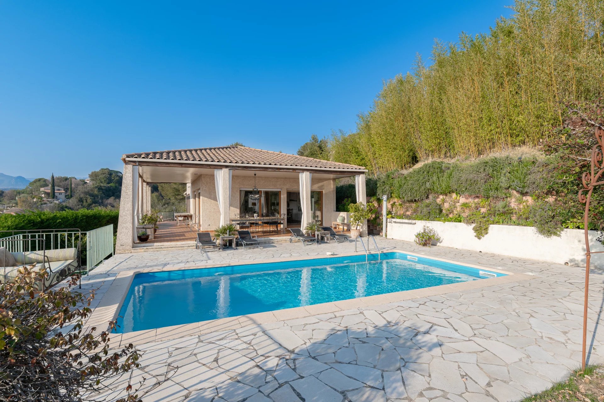 Magnificent neo- provencal villa with panorama view overlooking the Sea – Cap d’ Antibes, Mountains and Haut de Cagnes, 180 degrees south west.