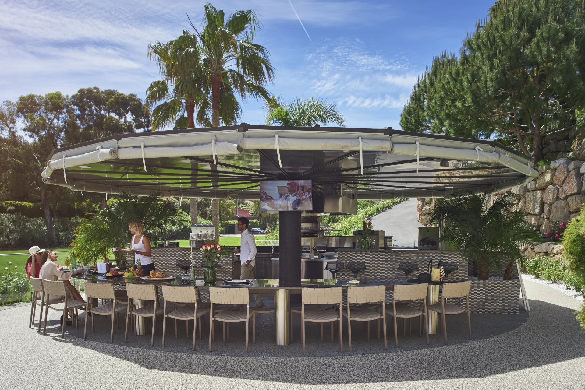 The main villa, spanning 600 m2, features 6 bedrooms, 7 bathrooms, a living room with a sea-view terrace, a kitchen, a dining room, a sauna, a hammam, a Jacuzzi, a heated infinity pool, and a professional bar area with dining facilities for 20 guests. The villa is serviced by an elevator.