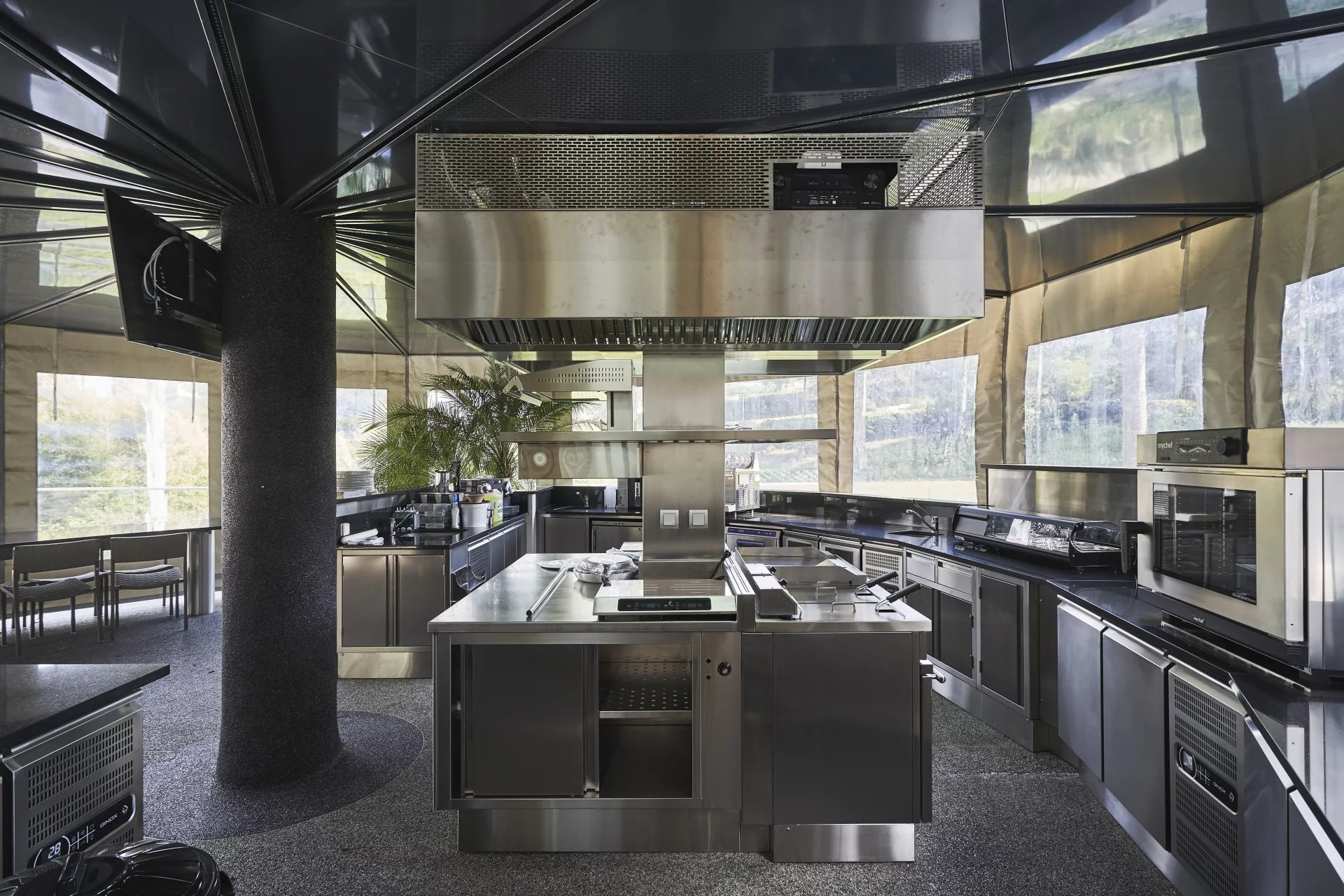 The 150 m2 caretaker’s house consists of 1 bedroom with shower room, an office, a professional laundry room, and a spacious living room with a terrace. It is equipped with a video surveillance room.
