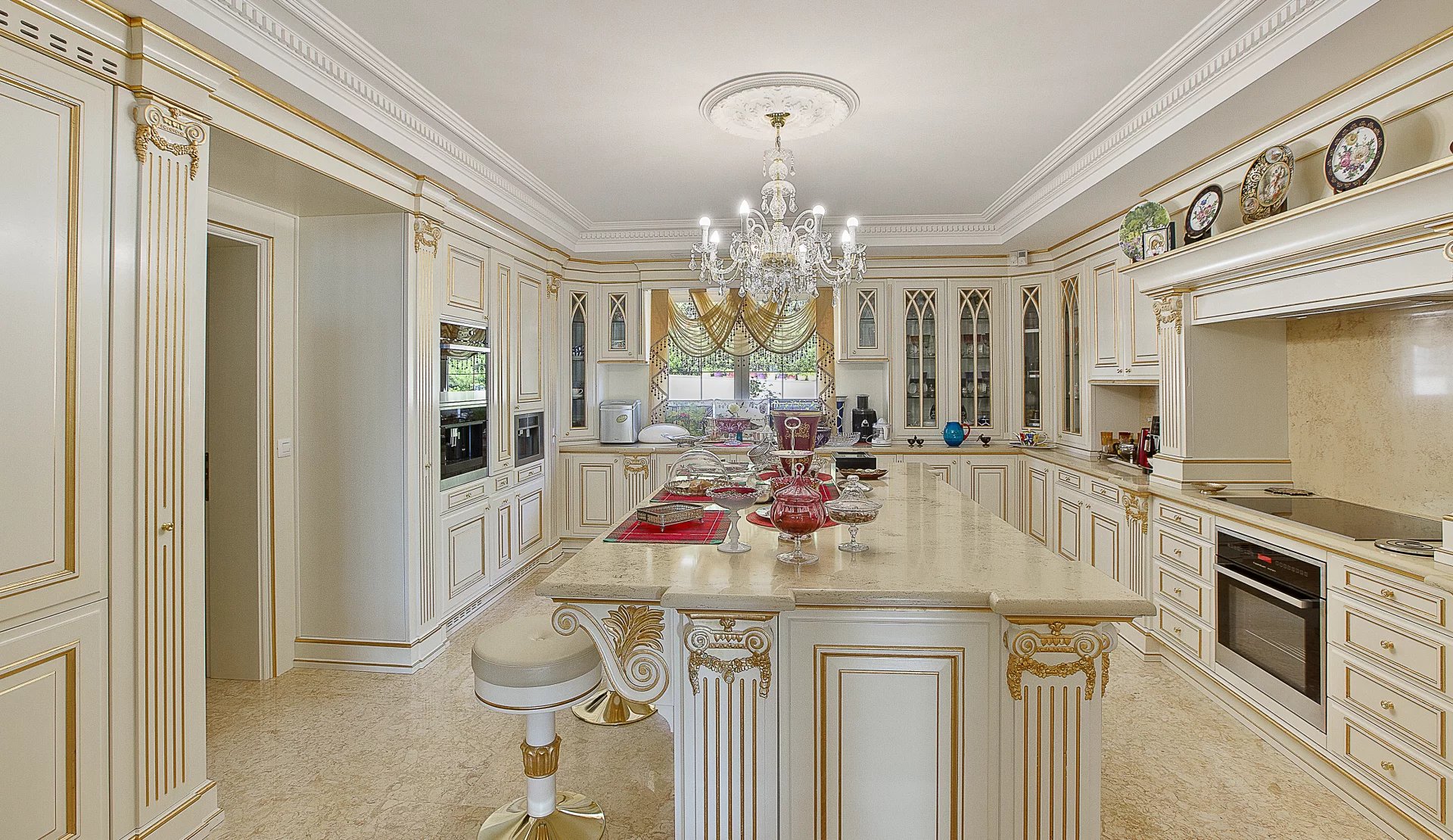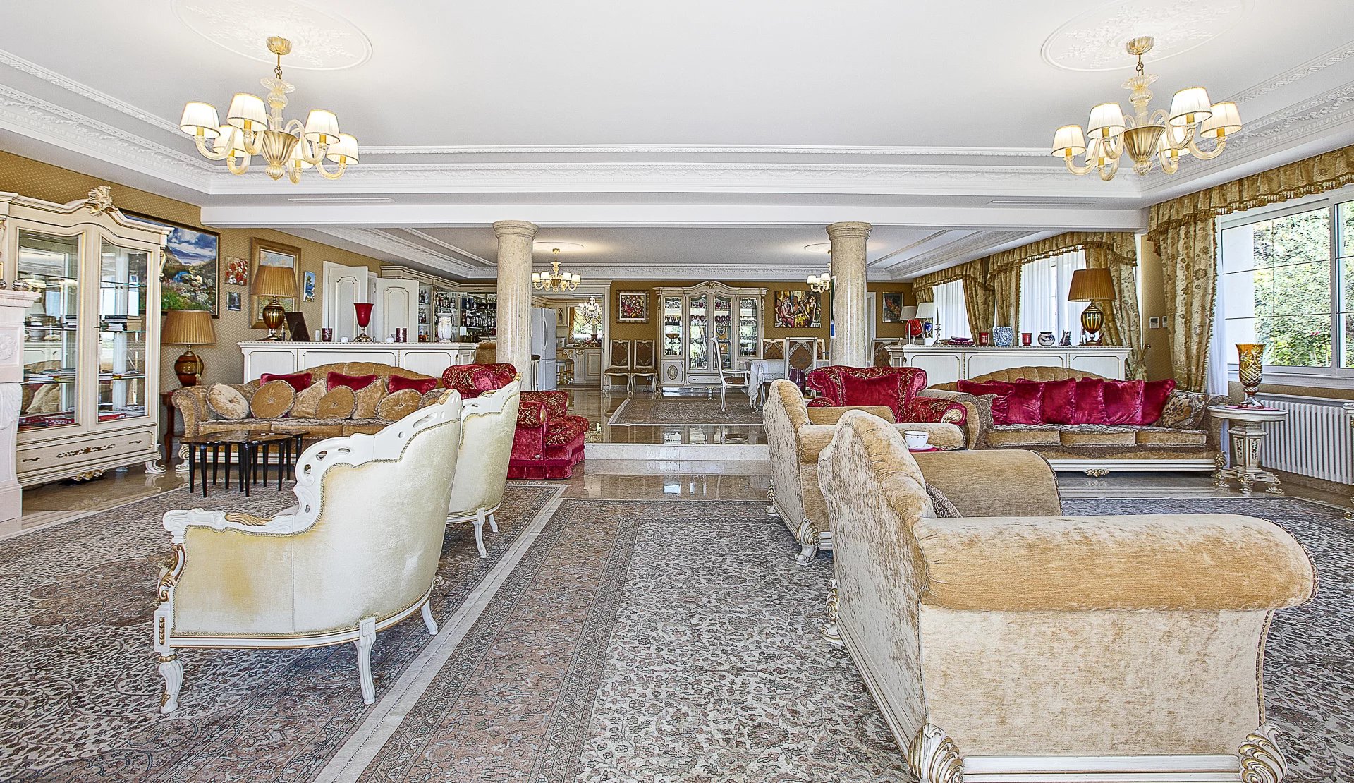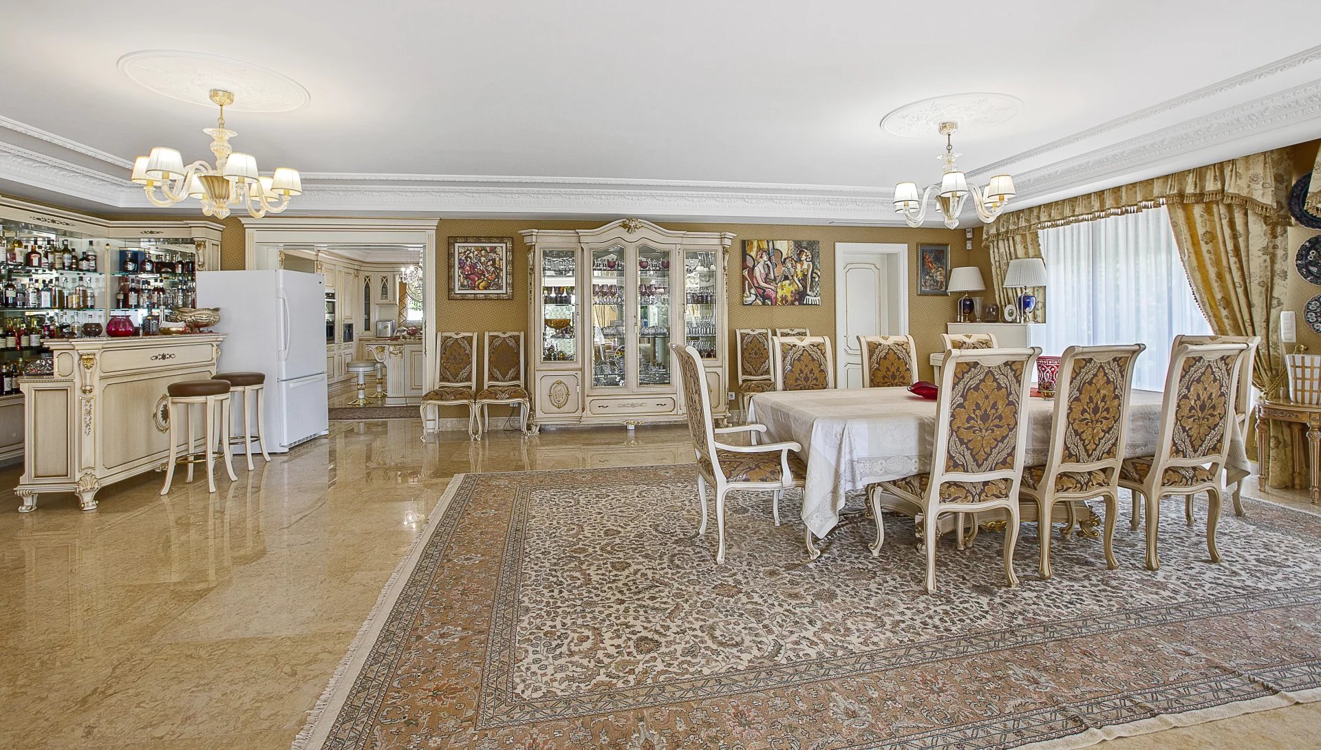 The spacious living room and dining area, spanning over 150 m2, are flooded with natural light, creating an elegant and welcoming environment for entertaining guests or simply relaxing with family.