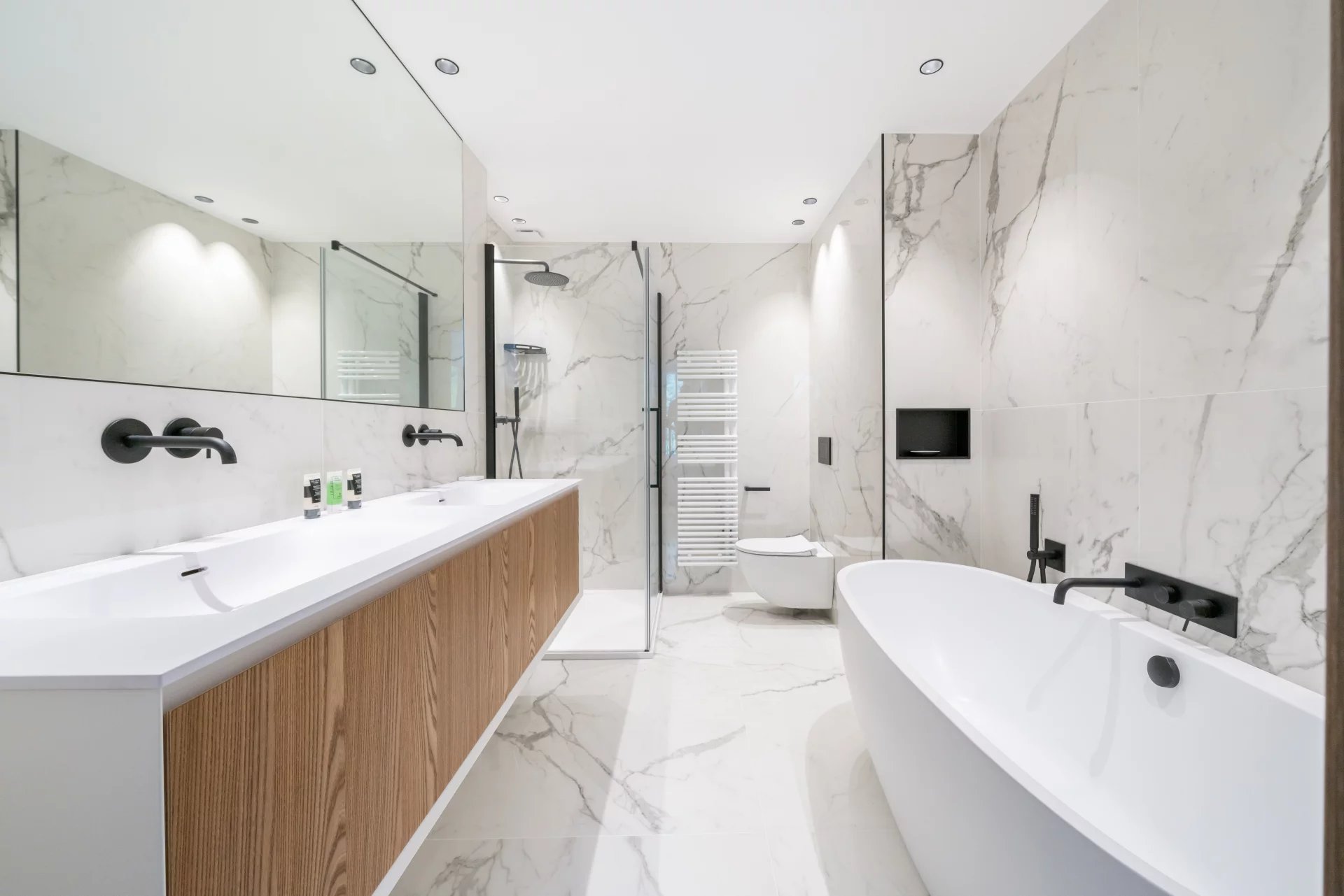 An outdoor parking space and a garage complete this exceptional apartment.