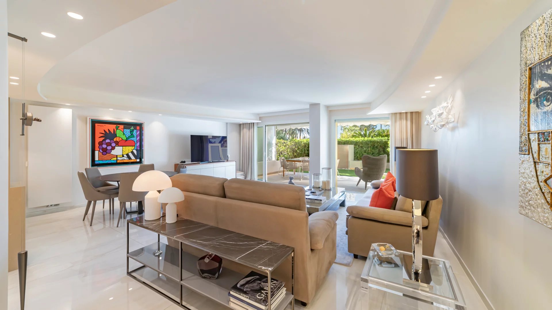 Exceptional 135 m2 apartment plus 38 m2 terrace and garden located in one of the Croisette’s most prestigious residences.