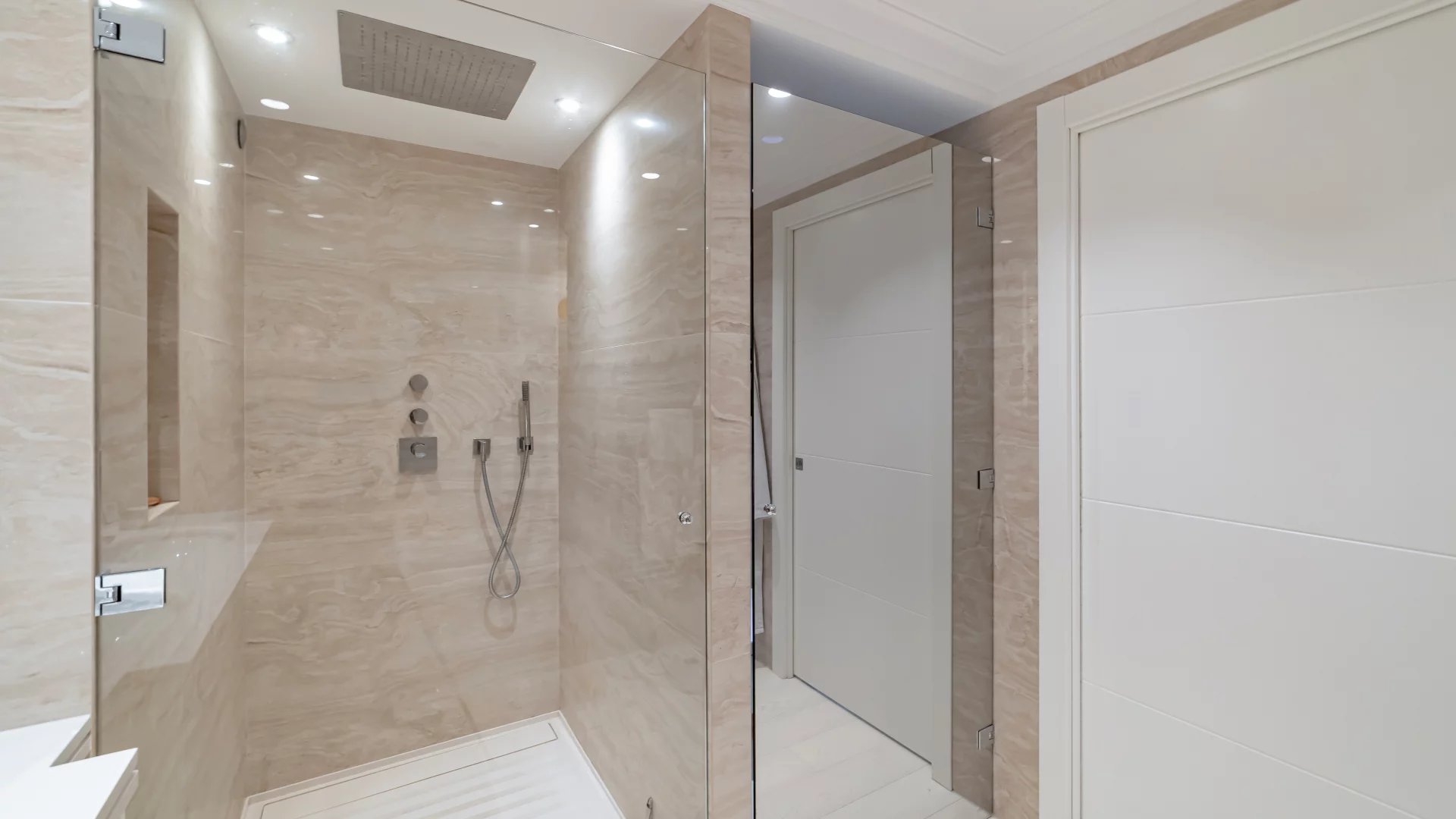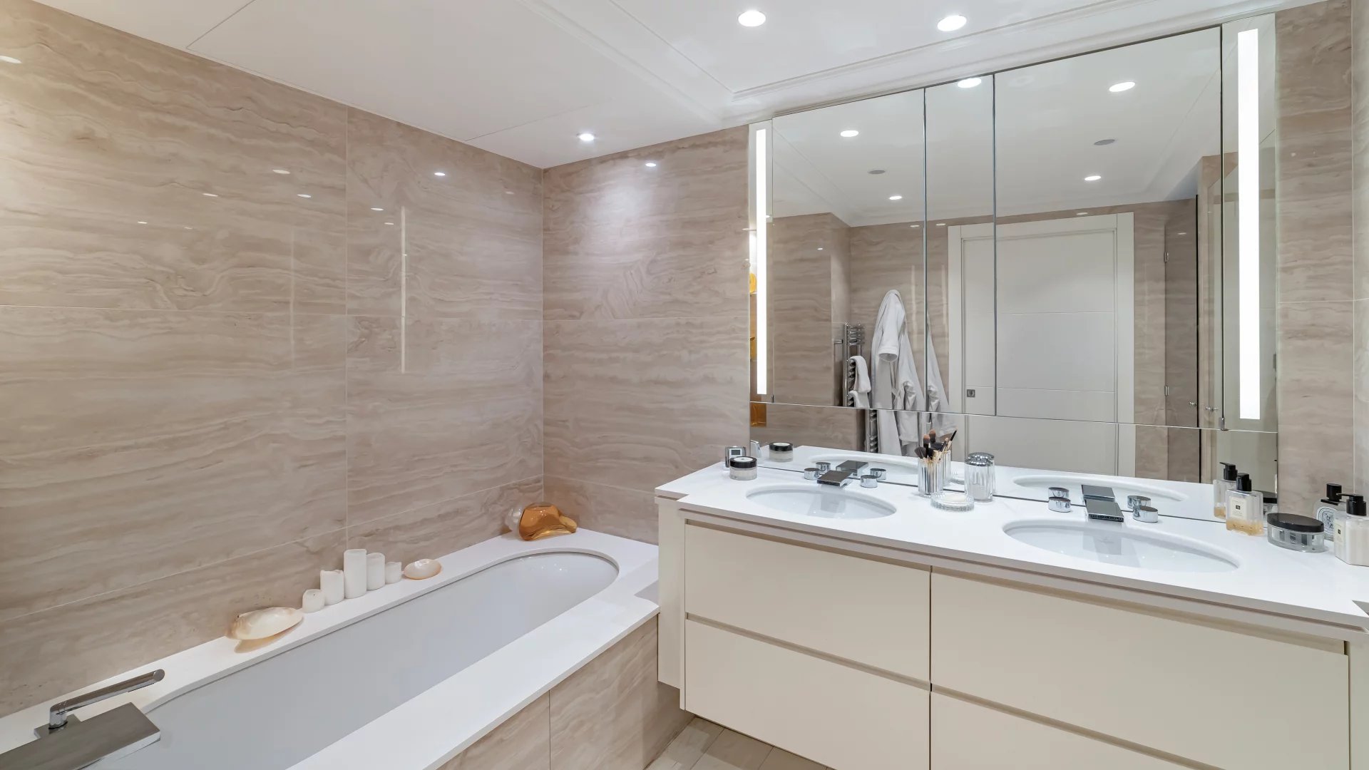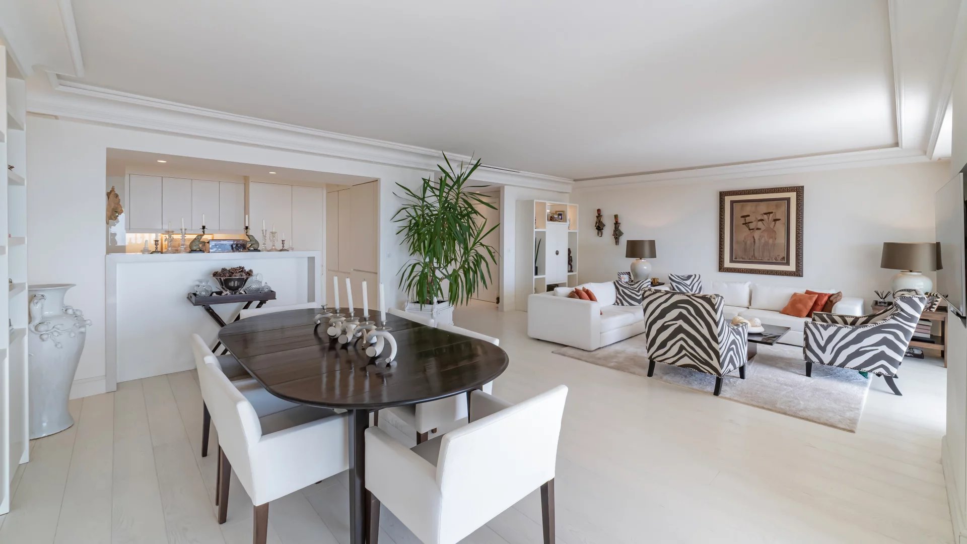 Beautifully appointed with top-of-the-range finishes and elegant contemporary decor, the apartment opens onto a spacious double living room with a discreet open-plan kitchen, creating a harmonious space for both relaxation and entertaining.