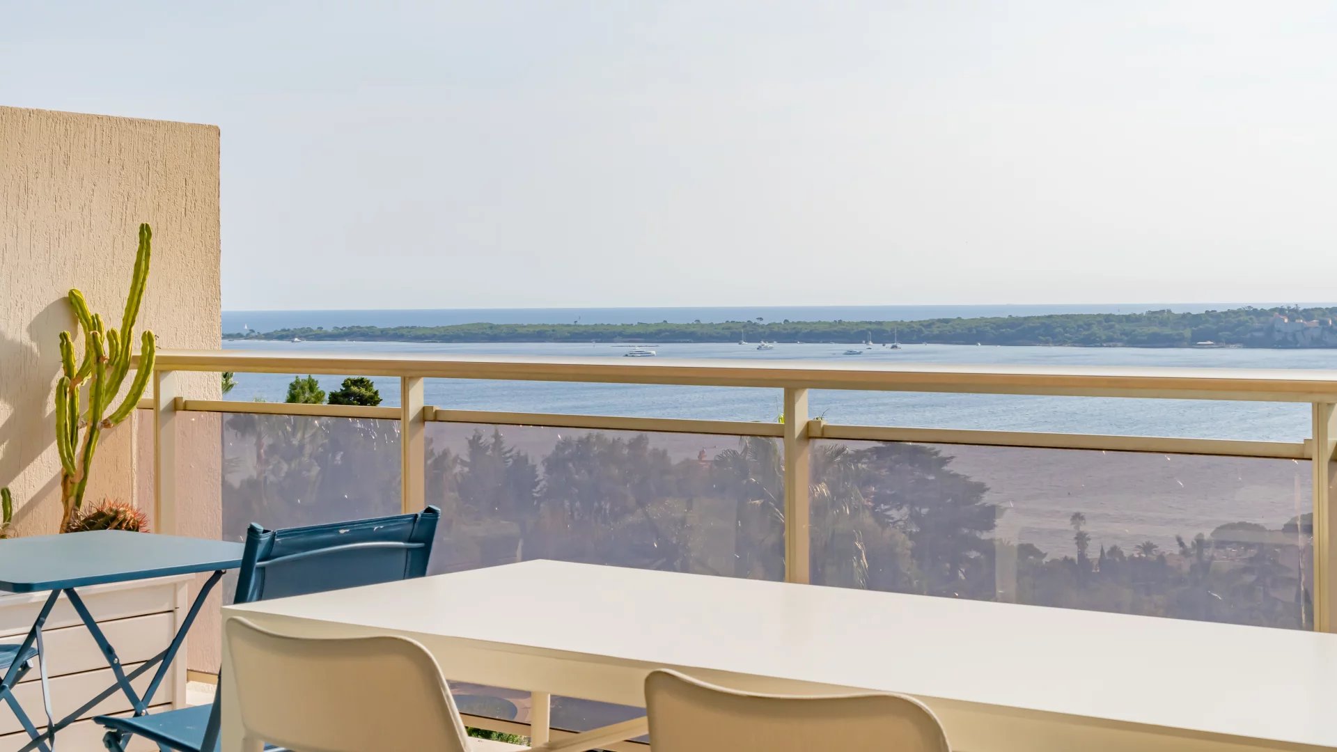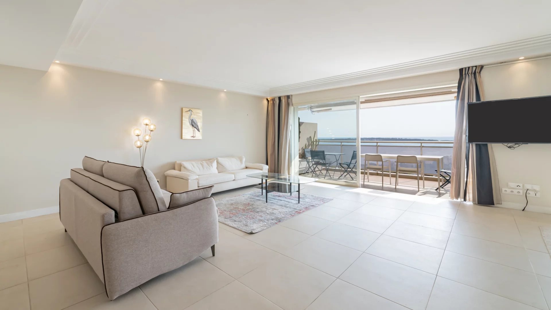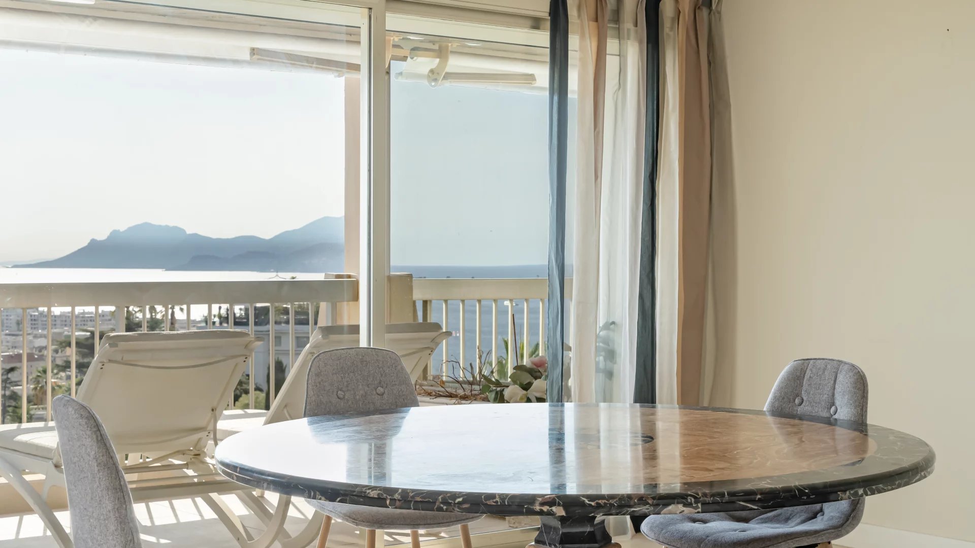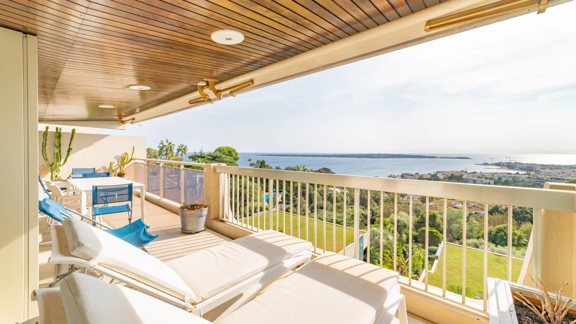 In a luxury residence in the prestigious Californie district, this flat boasts an exceptional panoramic view of the sea, the Lérins islands and the bay of Cannes.
