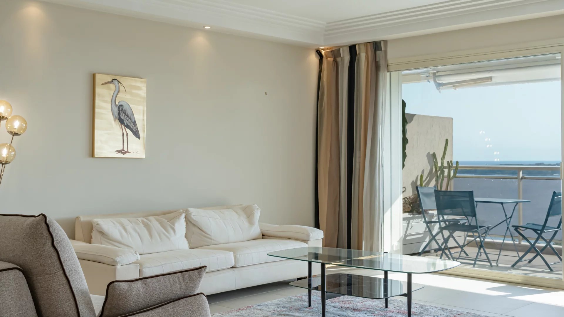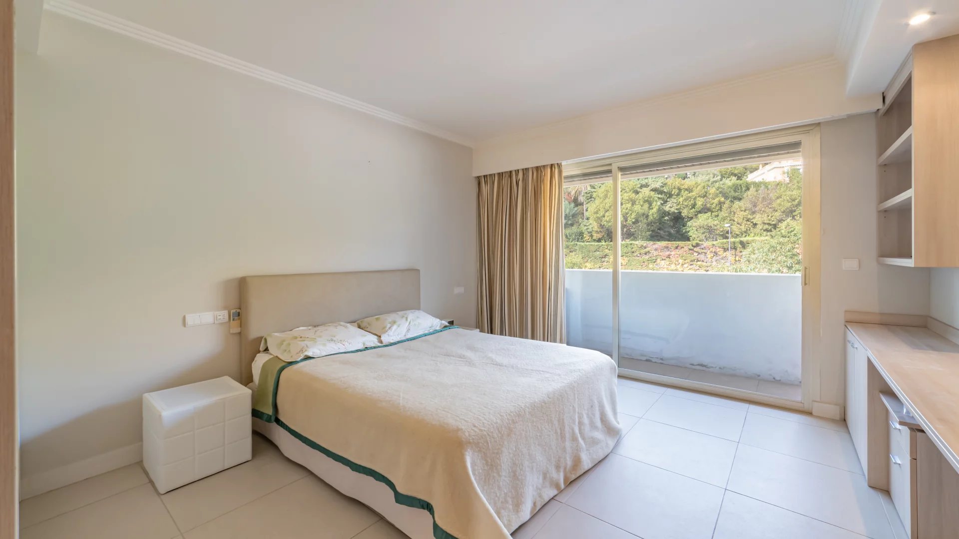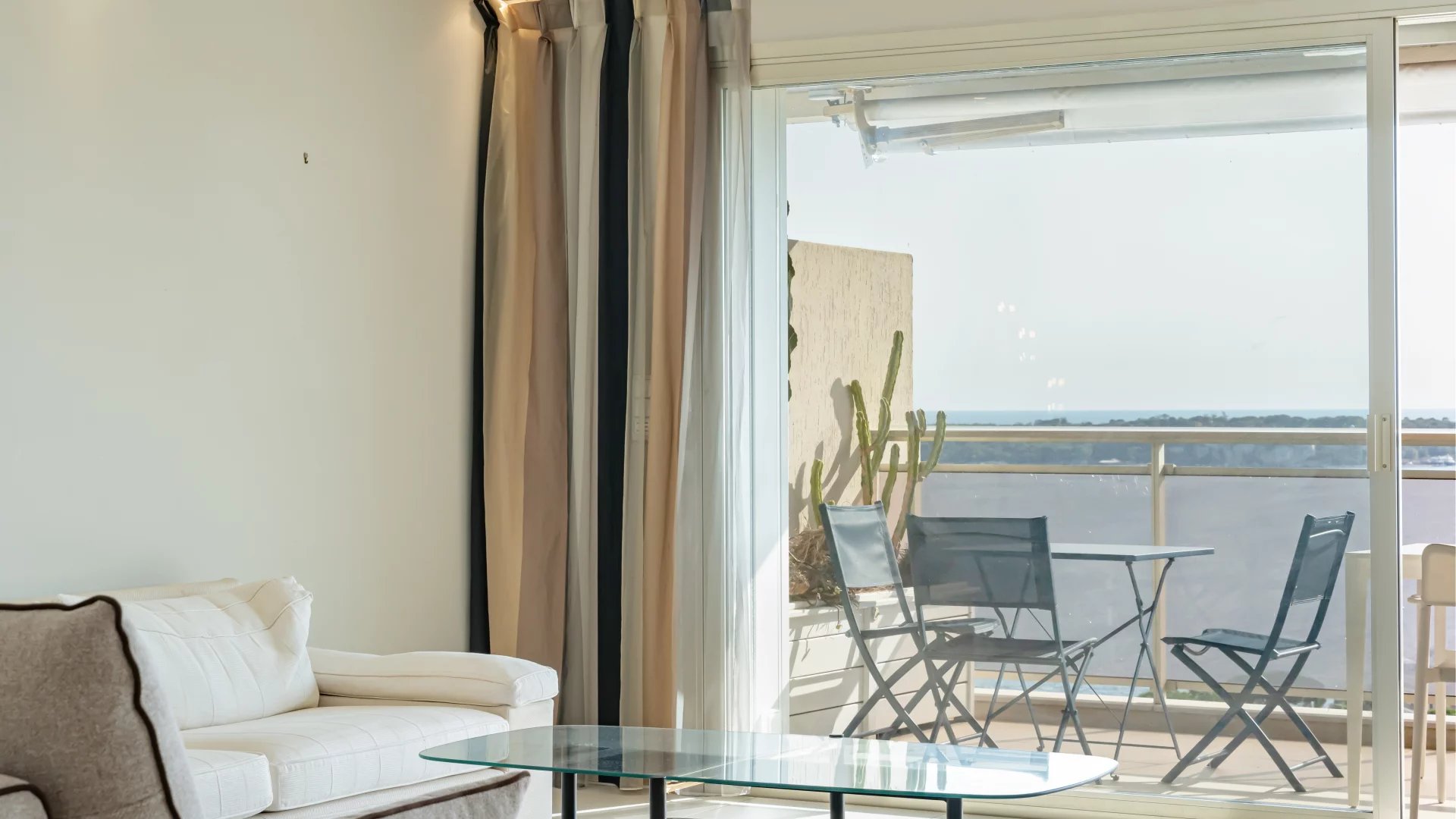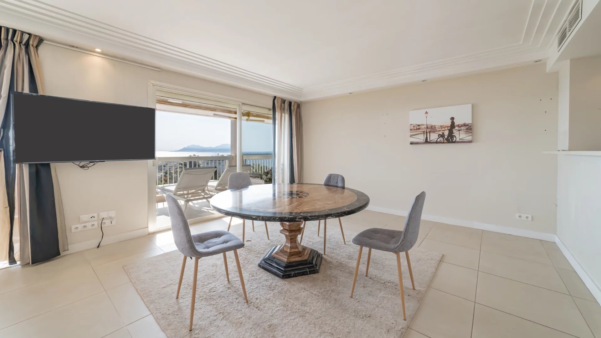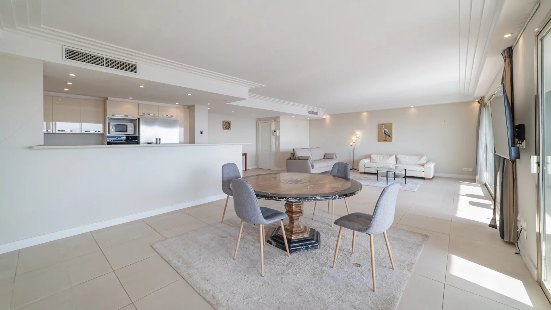 In a luxury residence in the prestigious Californie district, this flat boasts an exceptional panoramic view of the sea, the Lérins islands and the bay of Cannes.