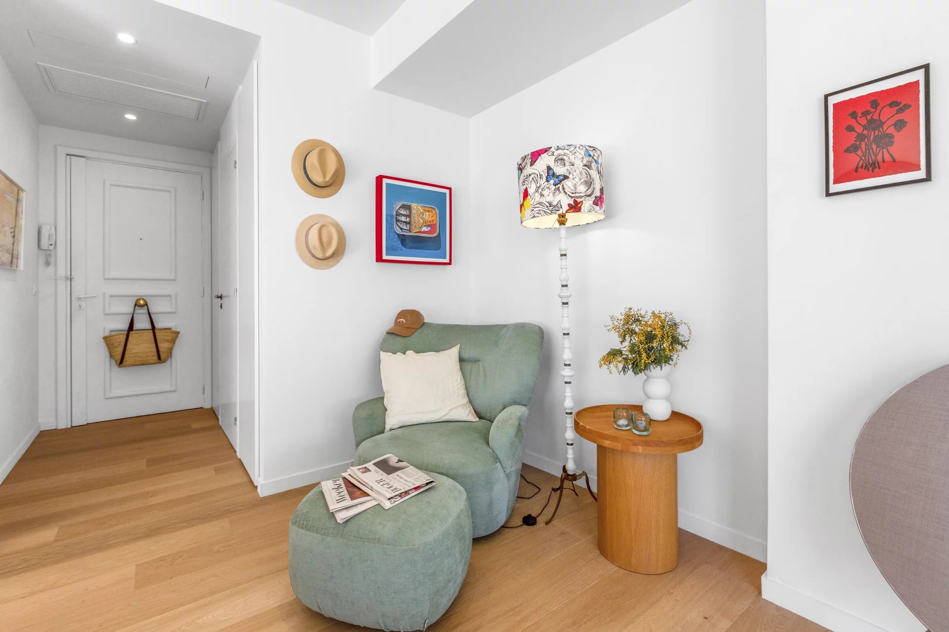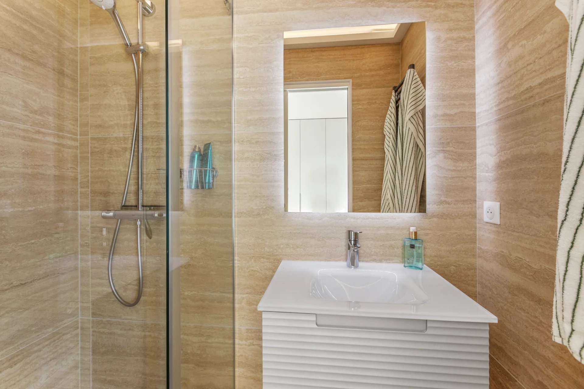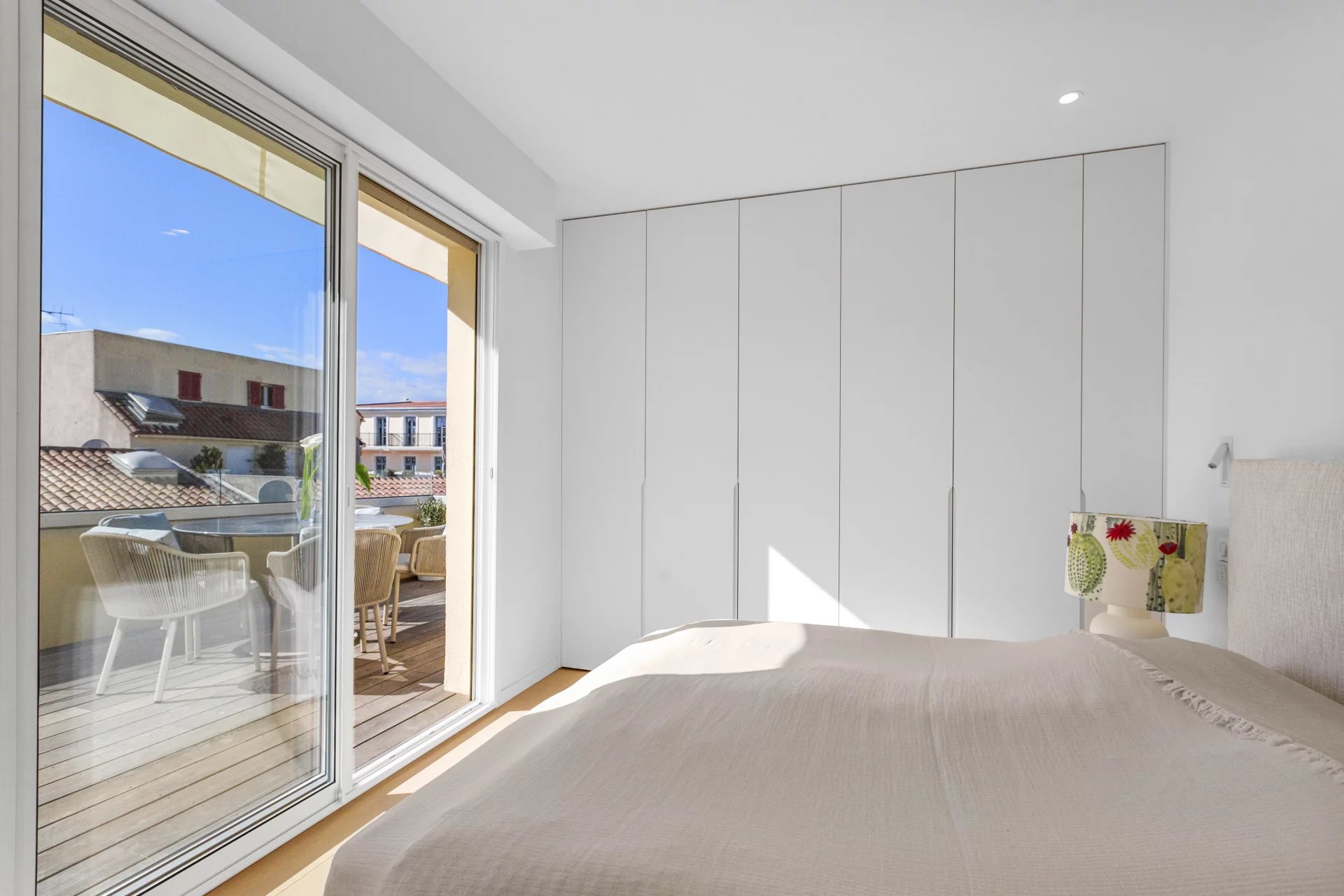 From the moment you enter, you’ll be charmed by the exceptional brightness of the living room, extended by an elegant dining area installed on the veranda. This refined living space opens onto a spacious rooftop terrace, equipped with a barbecue and offering a sea view.