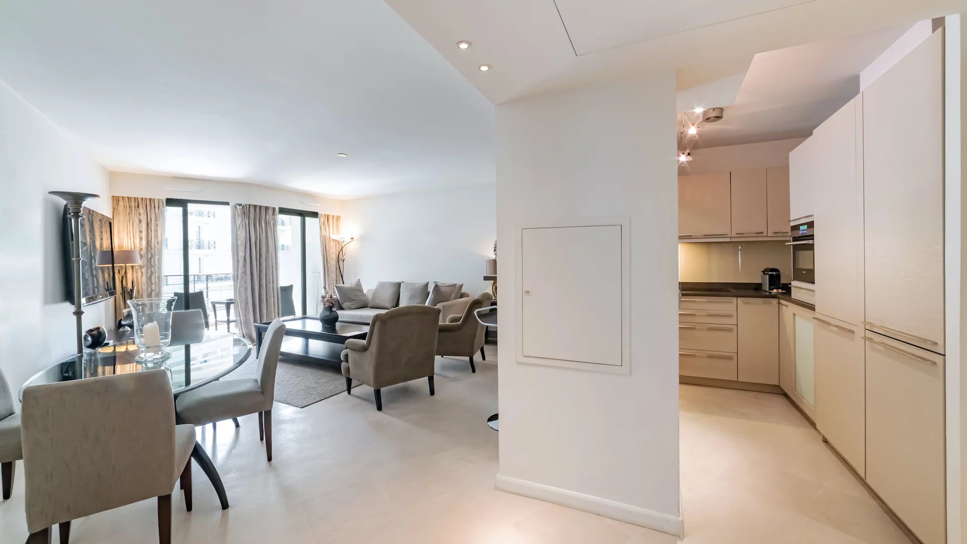 Just a stone’s throw from the Croisette, in a luxury residence with caretaker and swimming pool, this superb walk-through apartment boasts two terraces and an ideal layout.