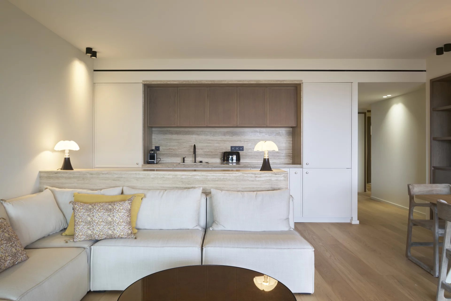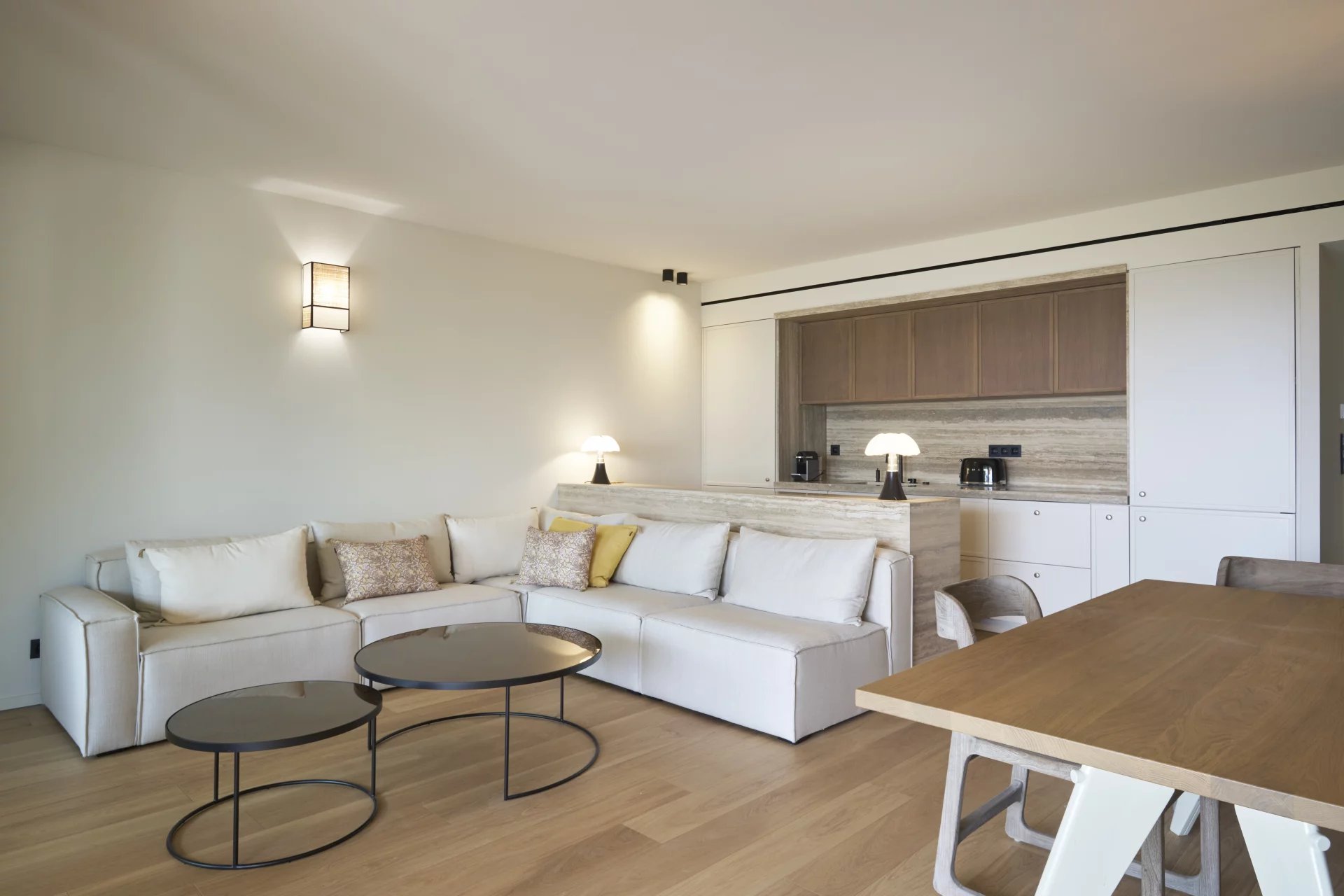 Accommodation consists of an entrance, a living room with fully equipped open kitchen opening onto a large south-facing terrace, 2 en-suite bedrooms with a bathroom and a shower room and dressing room, guest toilet and plenty of storage space.