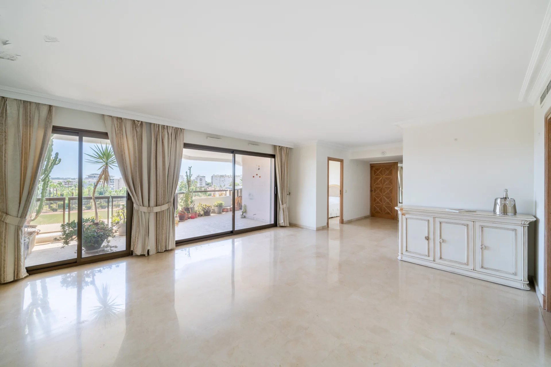 The apartment opens onto a front-facing terrace, offering open views and a pleasant sea glimpse.
