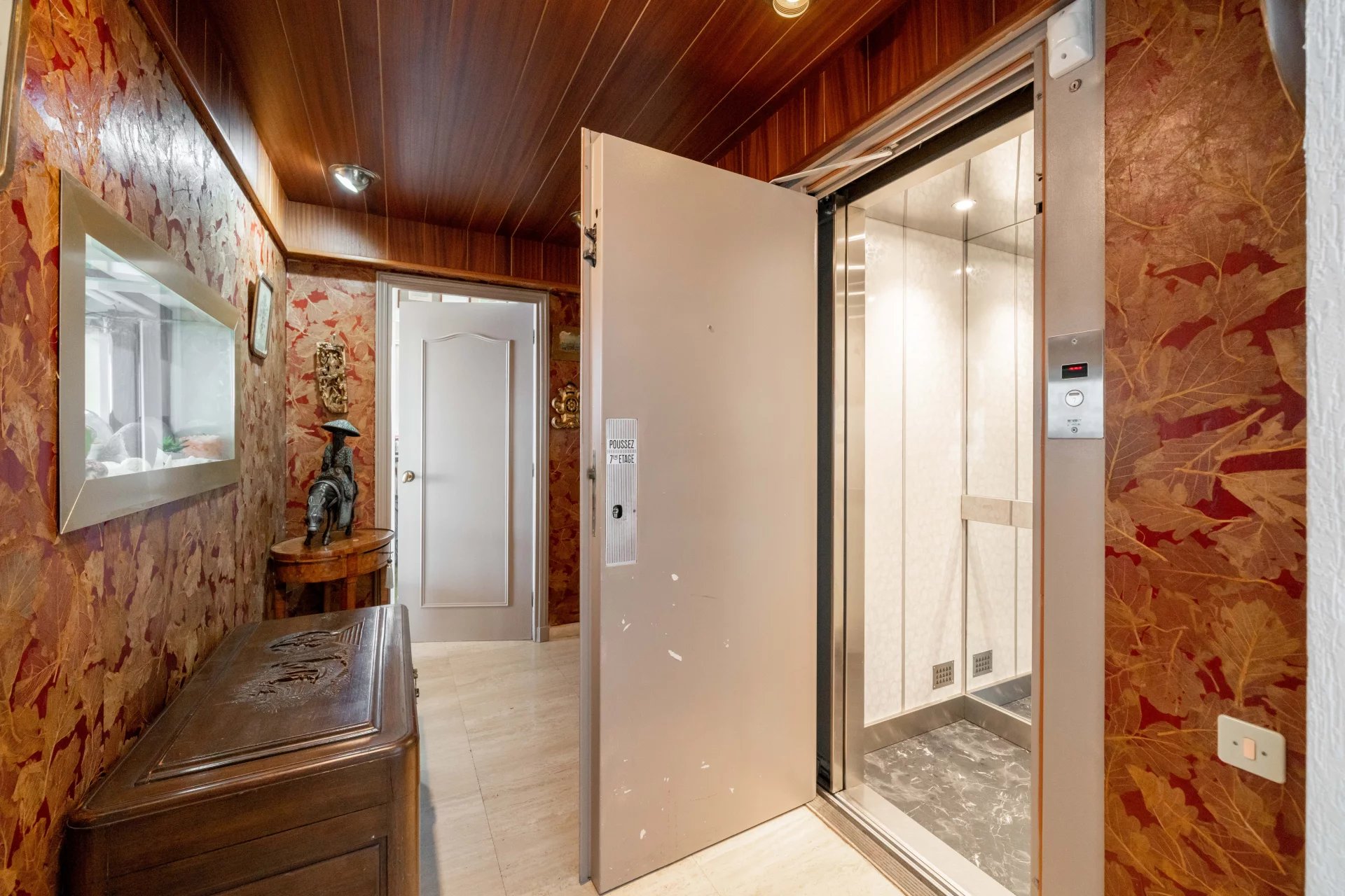 It comprises an entrance hall with private elevator, a spacious living room, a separate kitchen and two en suite bedrooms, each with a shower room or bathroom.