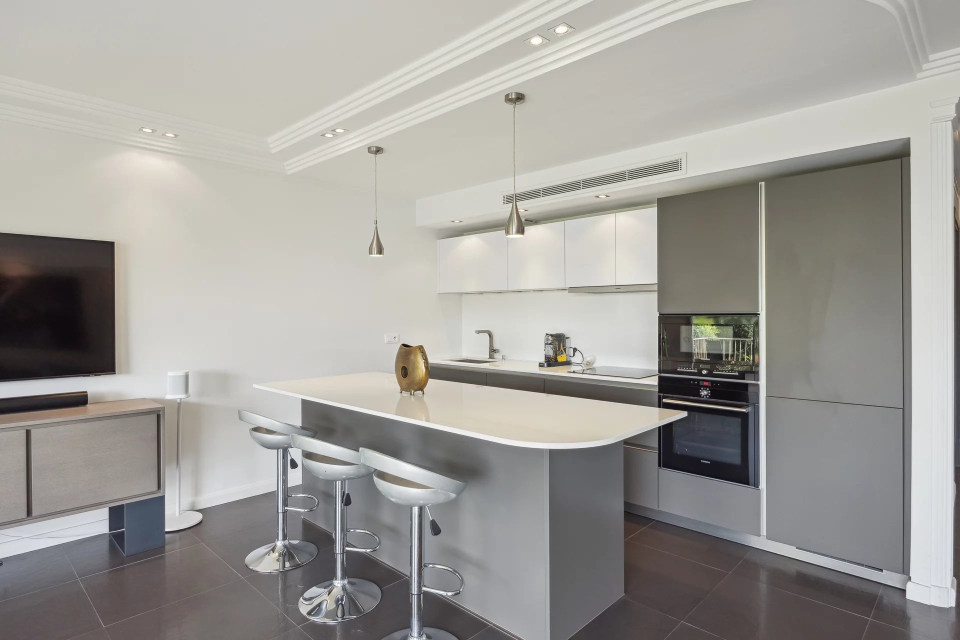 Inside, you will be charmed by a large bright living room and a modern open kitchen, perfect for entertaining friends and family. The apartment features a master bedroom with a bathroom and dressing room, as well as a second en-suite bedroom, ensuring comfort and privacy.