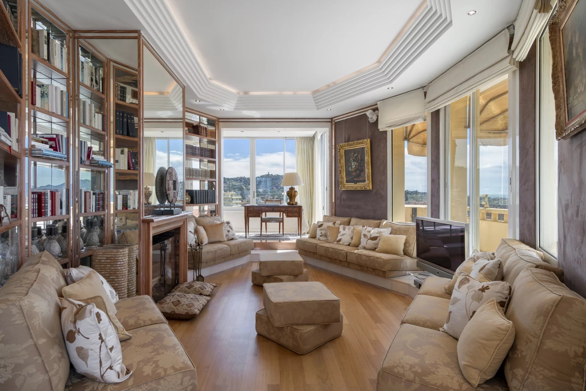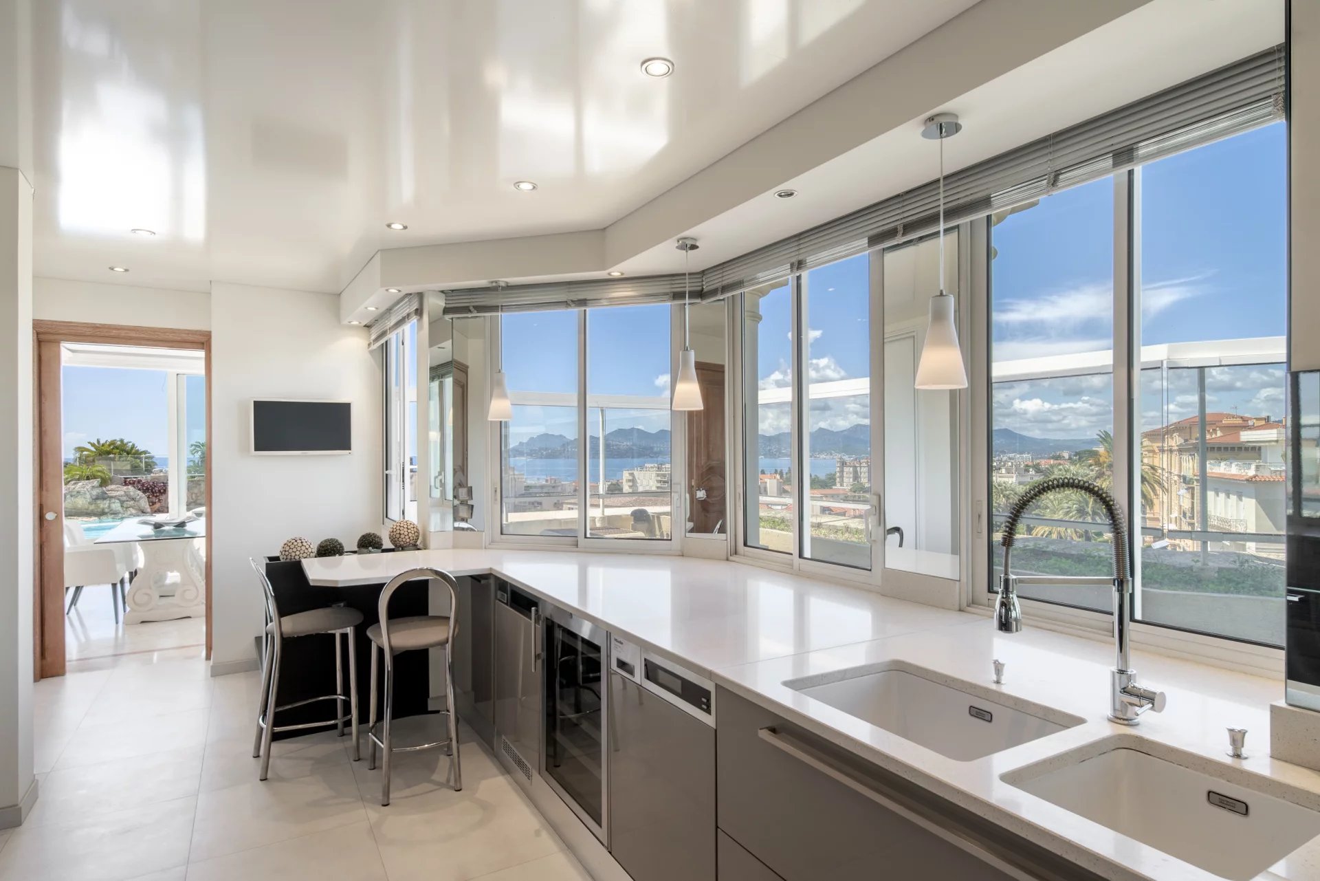 Bathed in natural light and offering a 360 degree panoramic view over the Bay of Cannes, the sea and the surrounding hills, it stands out for its generous volumes and high-end features.