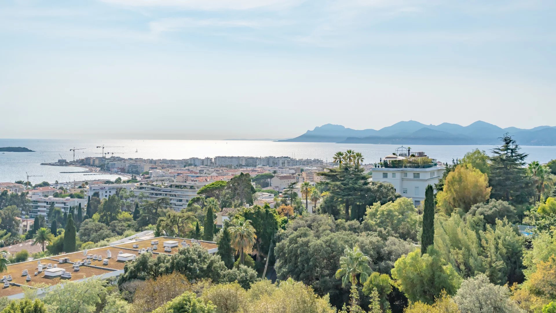 Fully renovated with high-end finishes, this elegant 85 m2 apartment enjoys a breathtaking panoramic view over the sea and the Bay of Cannes.