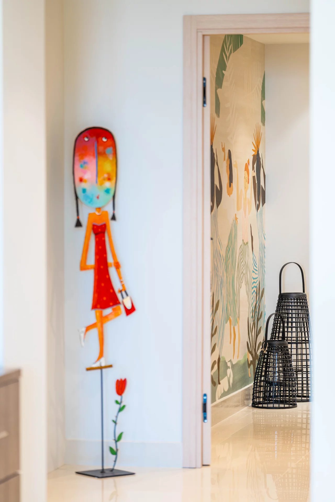 An entrance hall with extensive built-in storage,