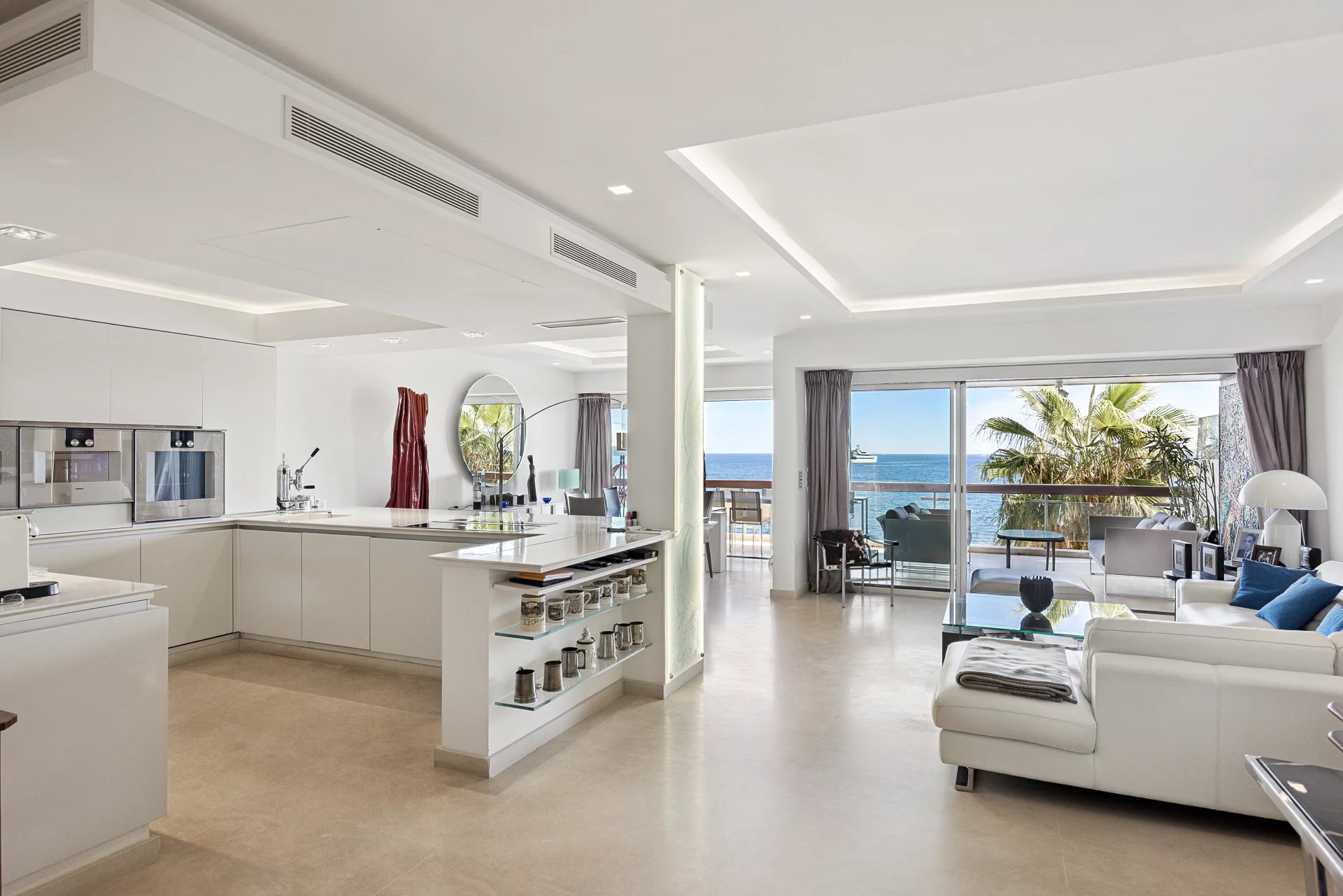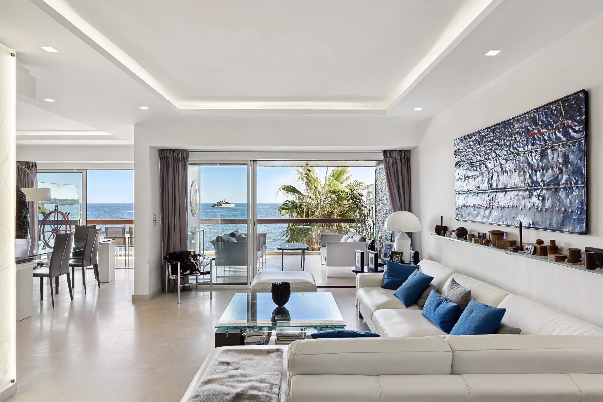 Exclusive listing in Cannes Palm Beach / Moure Rouge, magnificent on the beach and waterfront apartment.