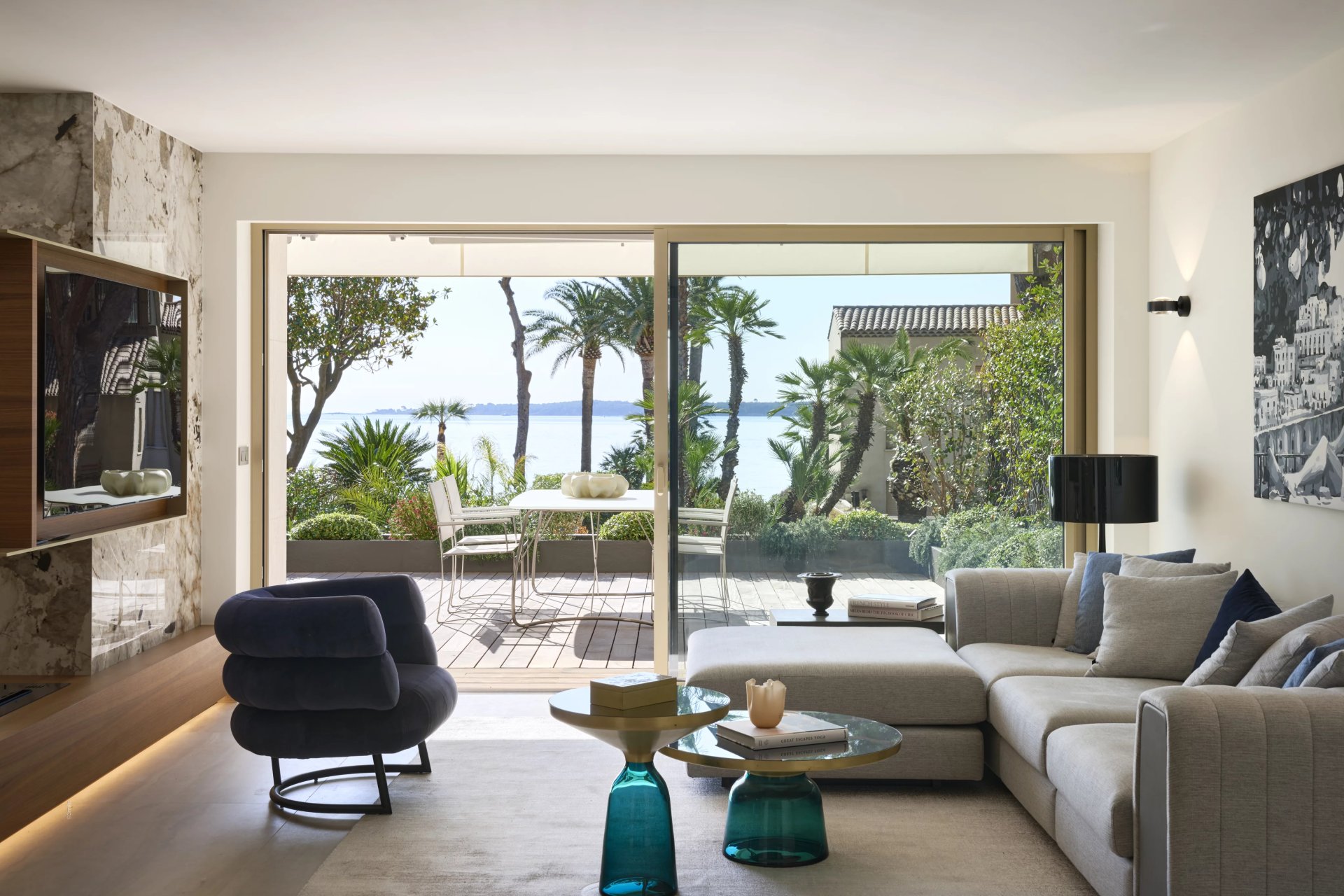 Facing the sea, this sumptuous 104 m2 apartment benefits from a large sunny terrace of 46 m2 offering an exceptional view of the sea and the Lerins Islands.
