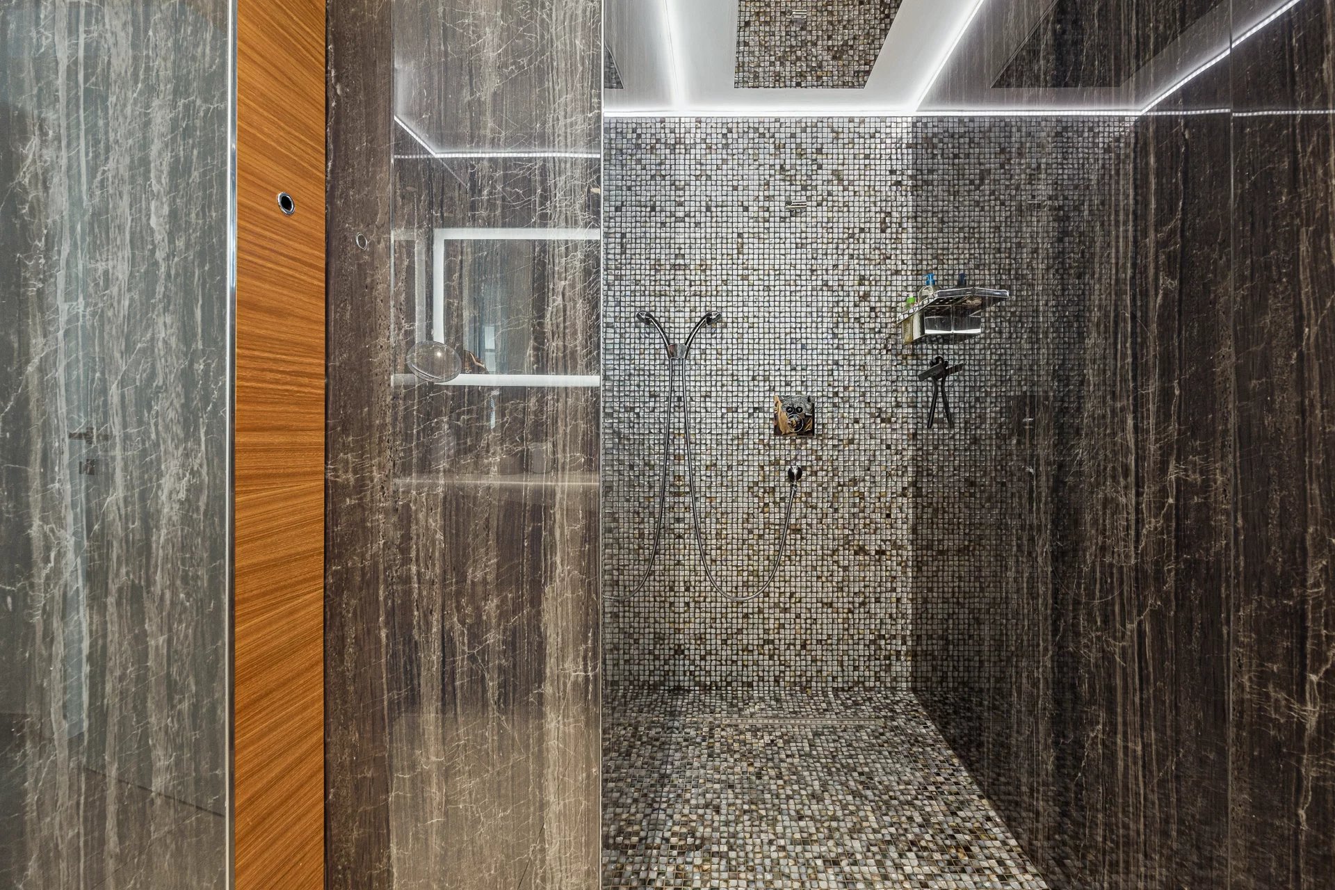 There are two en-suite bedrooms, each offering comfort and privacy. The high-end fittings and the lack of overlooking neighbours guarantee a pleasant and exclusive living environment.