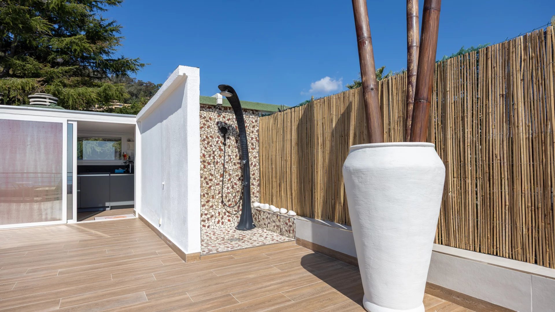 The centrepiece of this property is undoubtedly its 80 m2 roof terrace, accessible via a separate entrance. Enjoy a relaxation area with a covered summer kitchen and a solar-heated shower, all in an intimate setting.