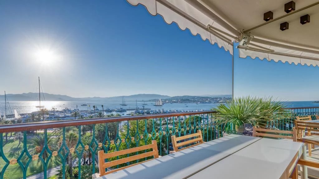 Unique in Cannes on the famous Croisette, this sublime 103 m2 apartment with panoramic views, situated on a upper level.