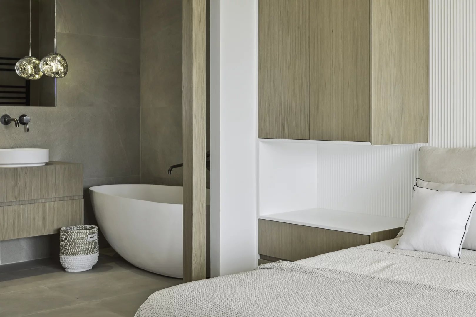 The sleeping area includes three en-suite bedrooms, including a magnificent master bedroom, offering privacy and comfort. Each bedroom is carefully designed to maximize natural light and well-being.