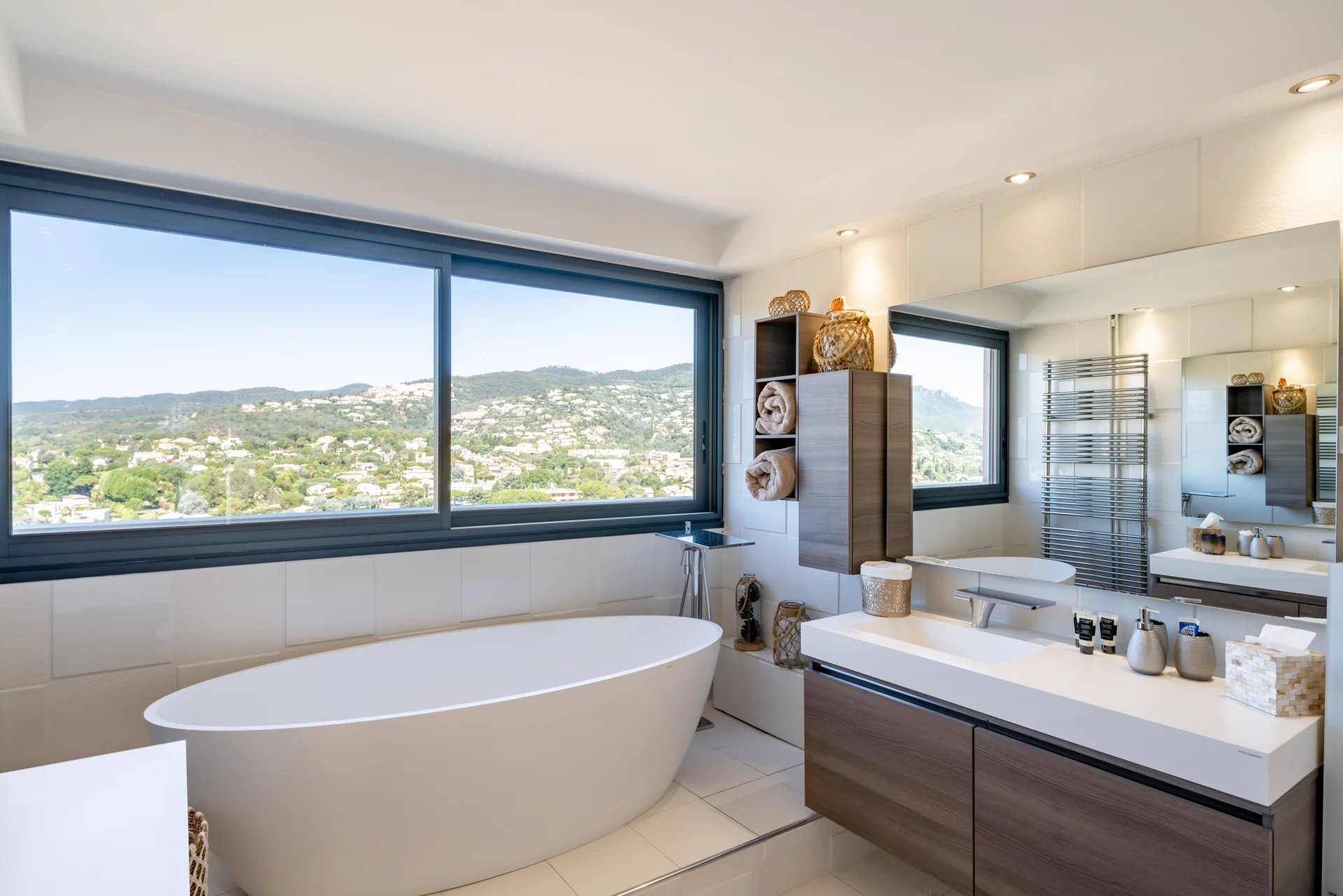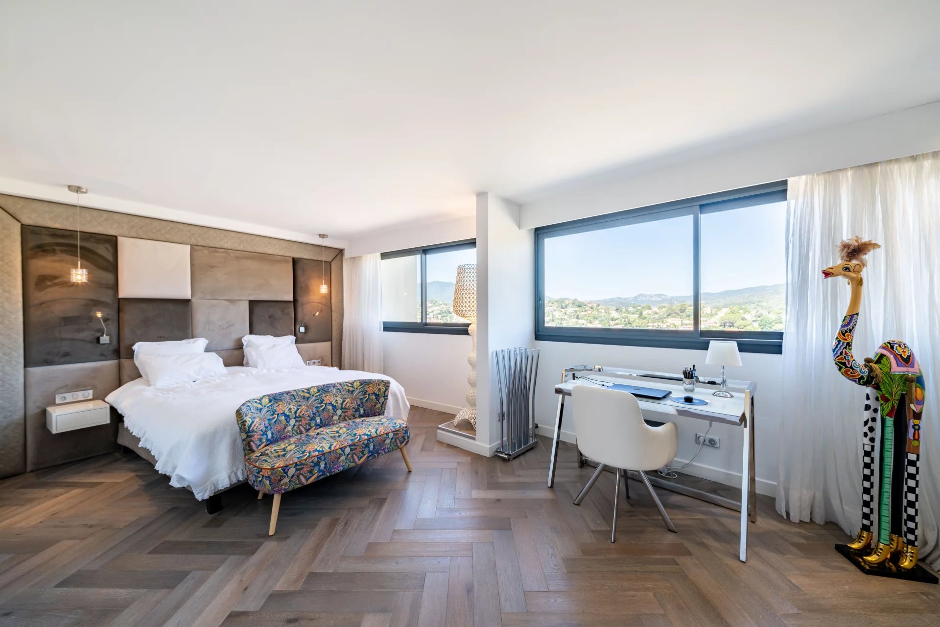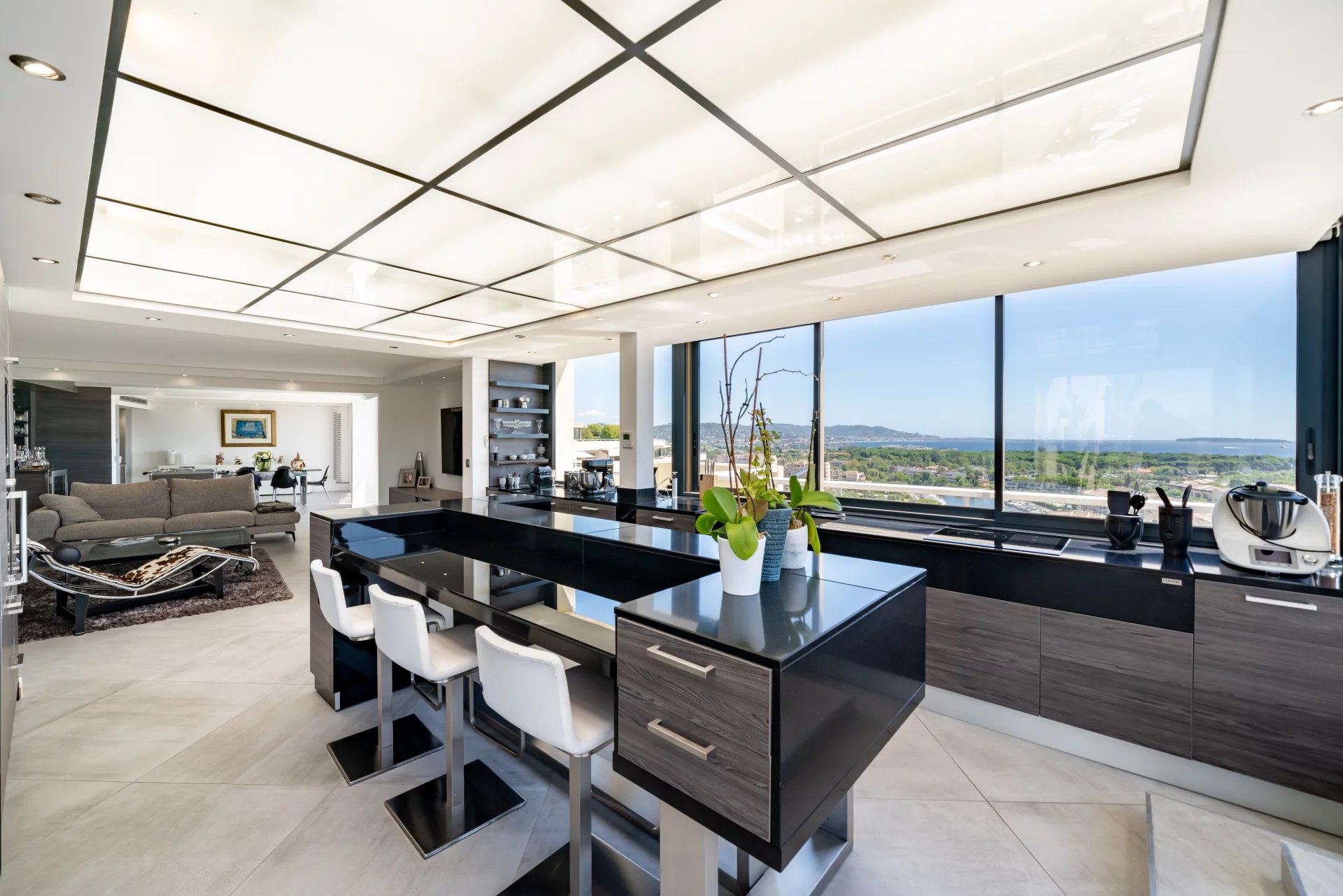 With a generous floor area, this apartment offers breathtaking panoramas of Cannes, the Esterel Mountains, and the Mediterranean. The living space includes a bright living room with a dining area and bar, a fully equipped kitchen, and three en-suite bedrooms, including an outstanding Master suite.