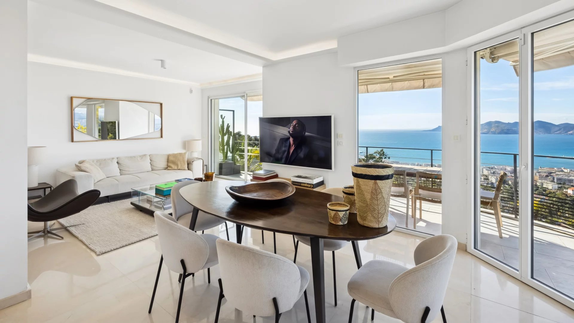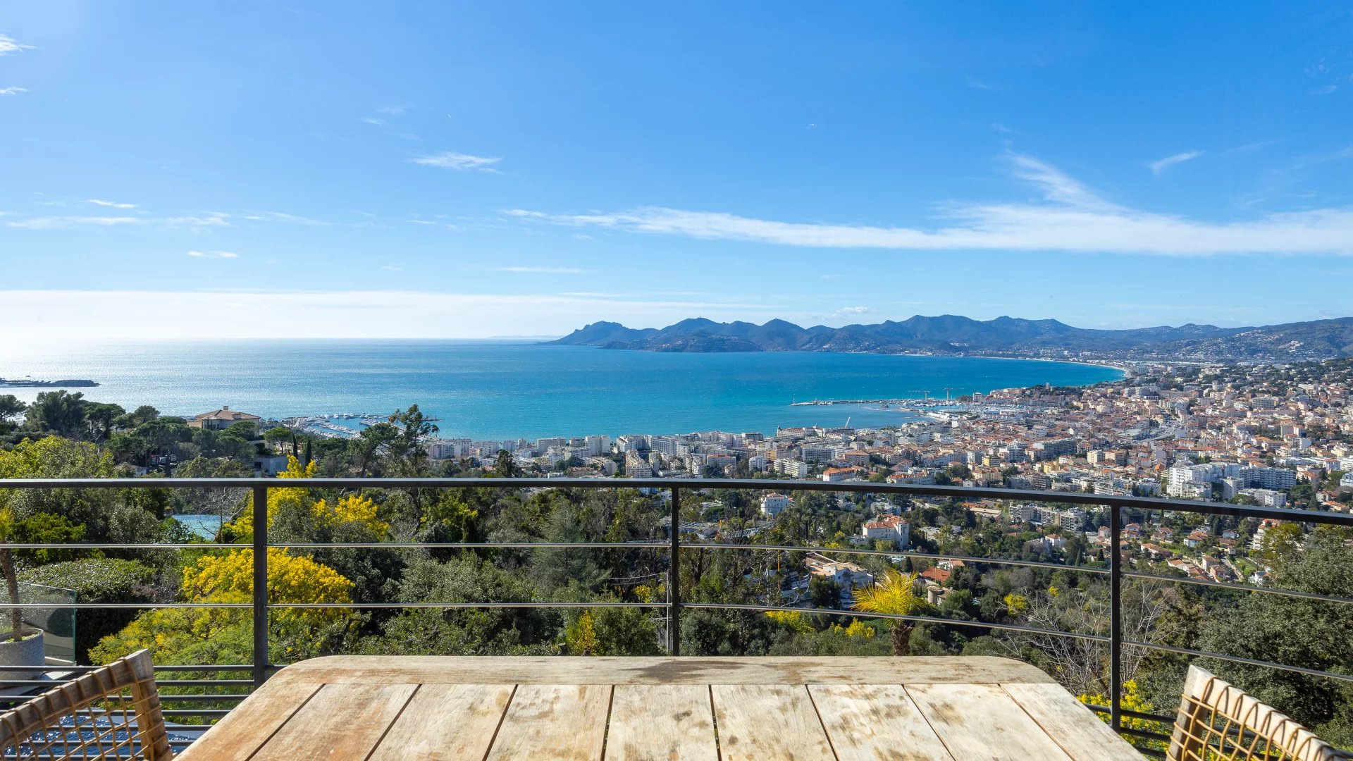Located in a peaceful residential area, this 72 m2 apartment, in excellent condition, offers a breathtaking panoramic sea view over the entire bay of Cannes.