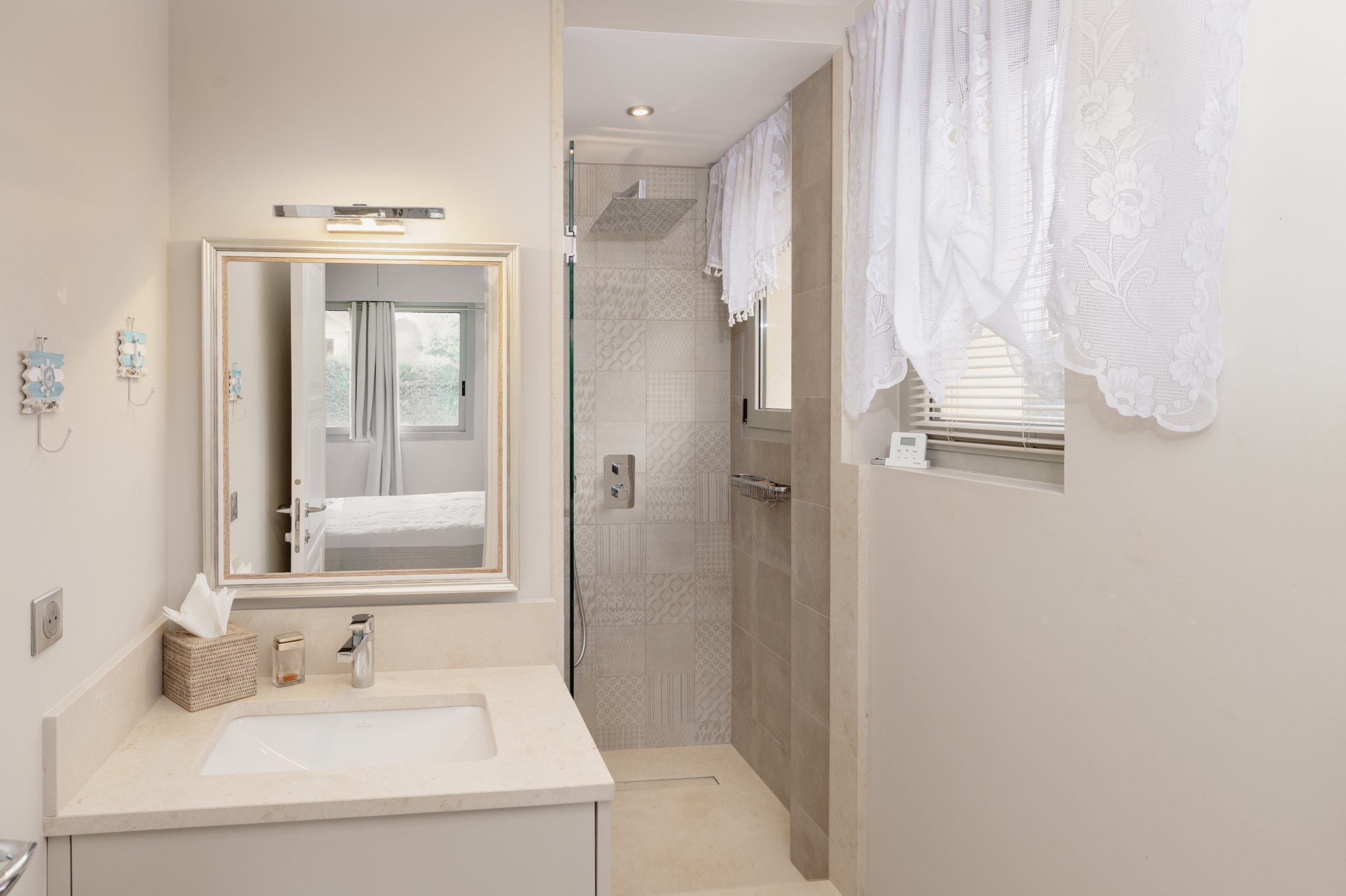There is more than 125m2 of living space in total which includes a good sized reception hall and open plan living and dining room which both open onto the terrace, there is a nicely fitted US style open kitchen and three ensuite bedrooms.