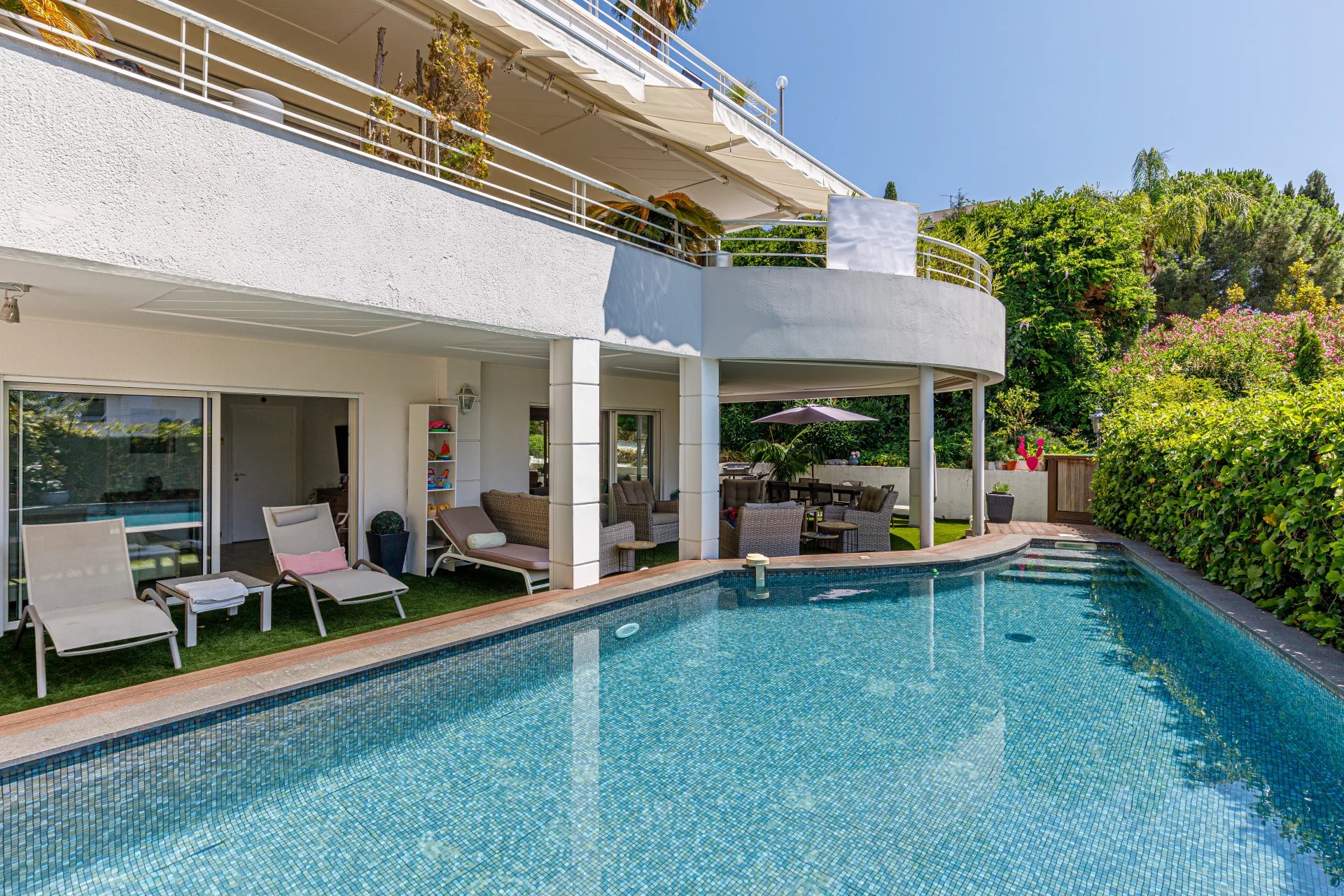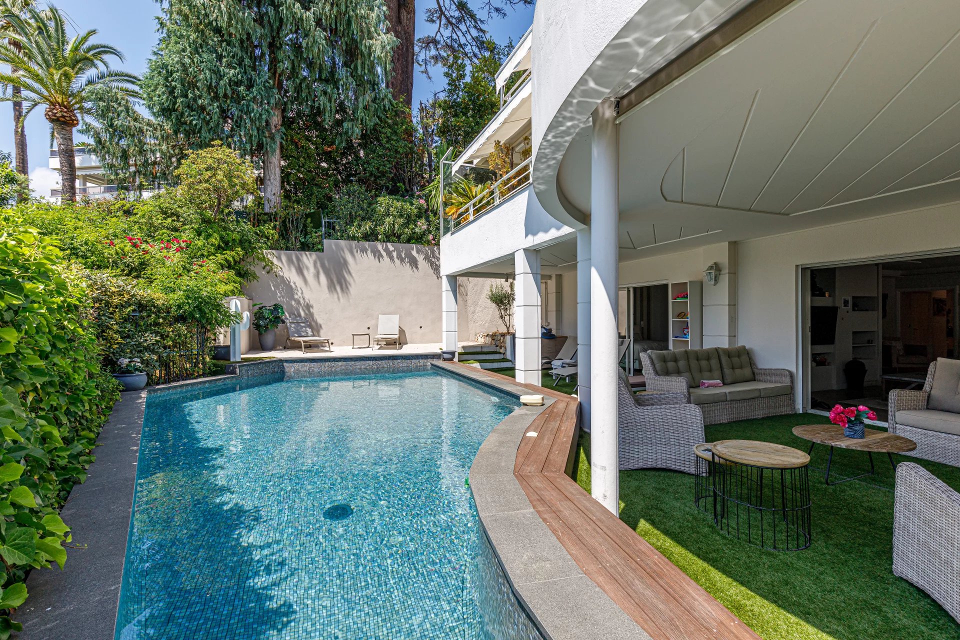In the sought after residential area of La Californie in Cannes, on the edge of the Montfleury area, splendid 3-bedroom garden apartment of approximately 161 m2, with private swimming pool and south-west facing garden/terrace of 255 m2.