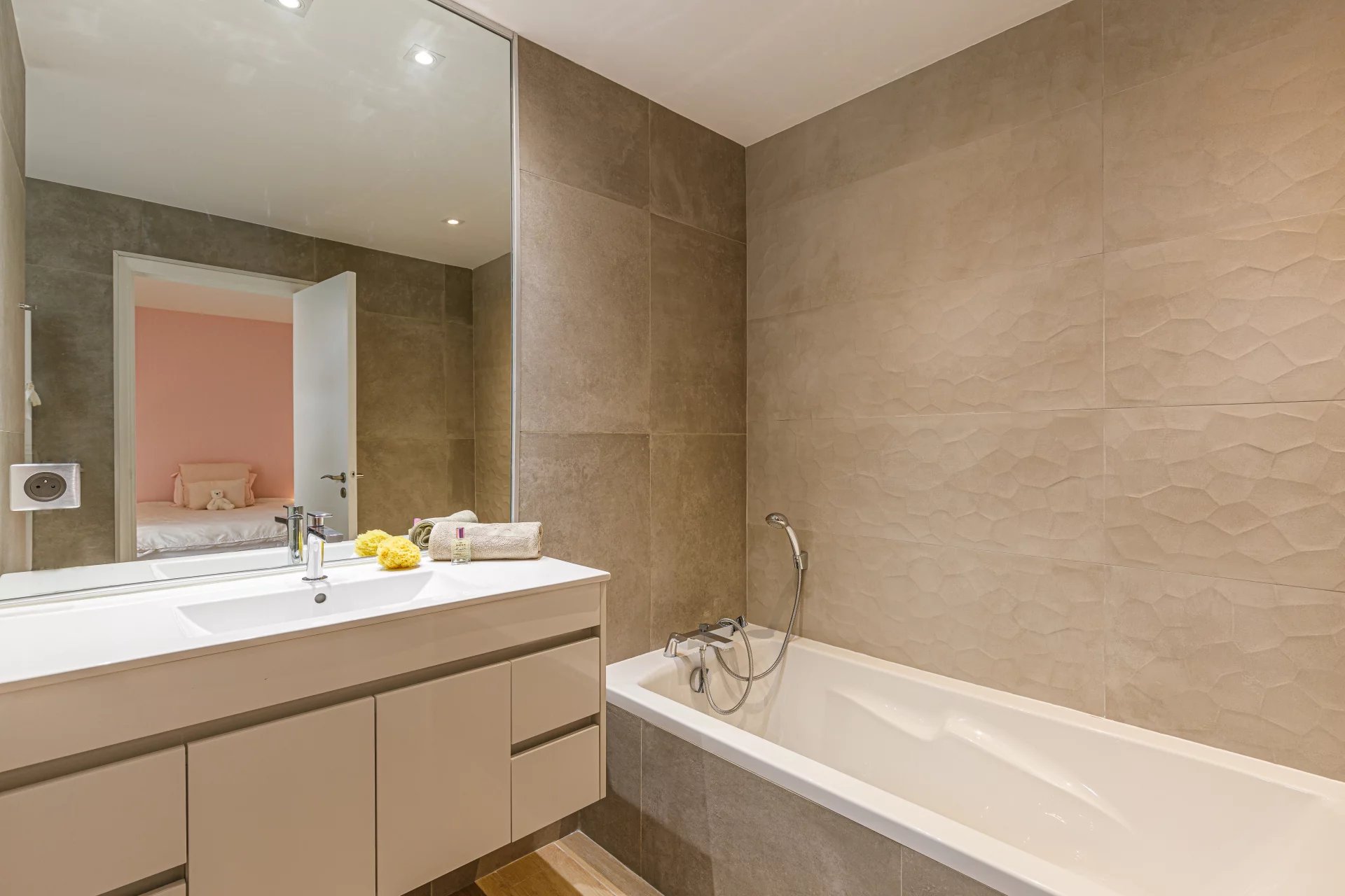The flat has been completely renovated using the finest materials and comprises: a large living/dining room with open-plan kitchen, 3 en-suite bedrooms, 2 of which have shower rooms/toilet and the third has a bathroom/toilet, and a patio.