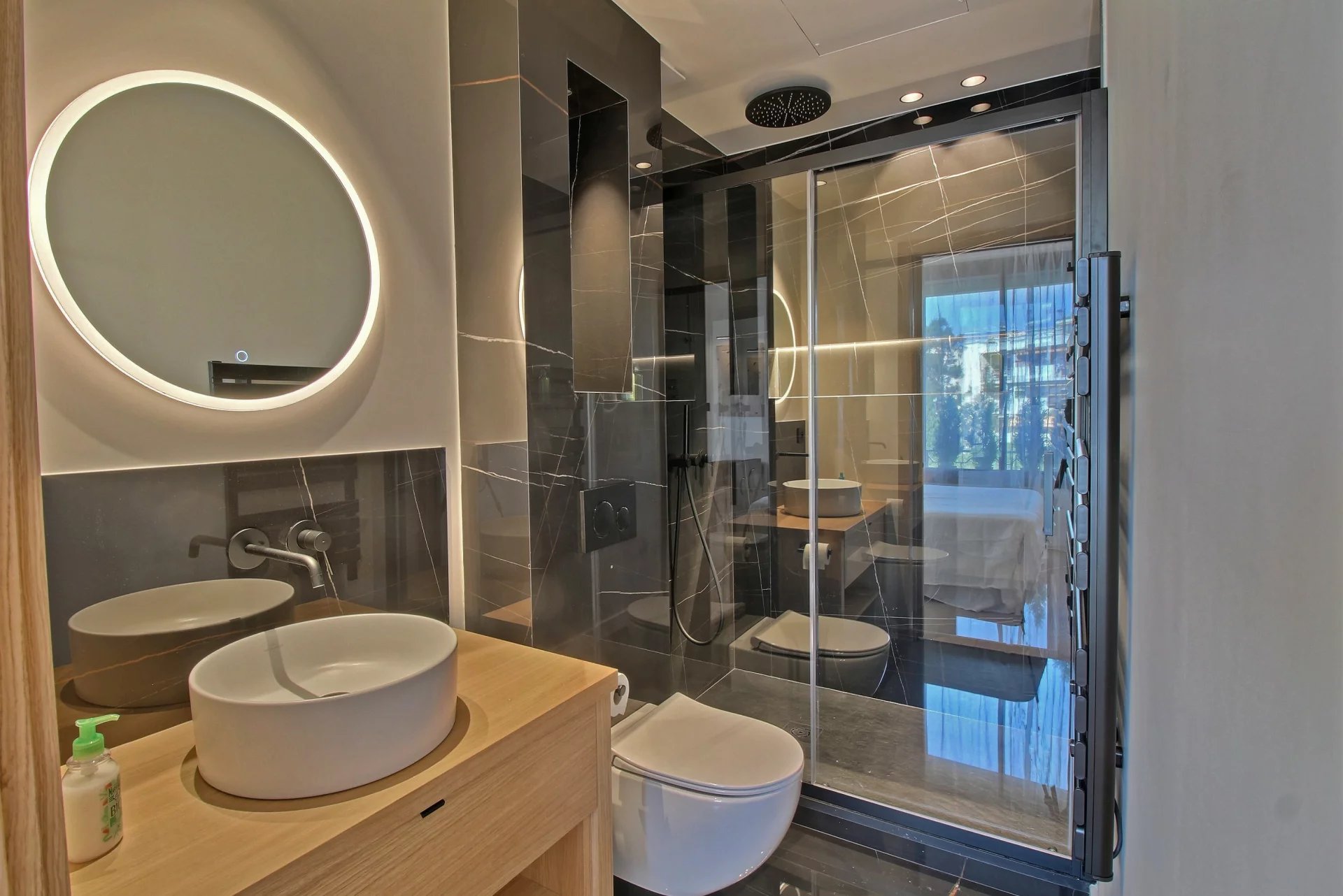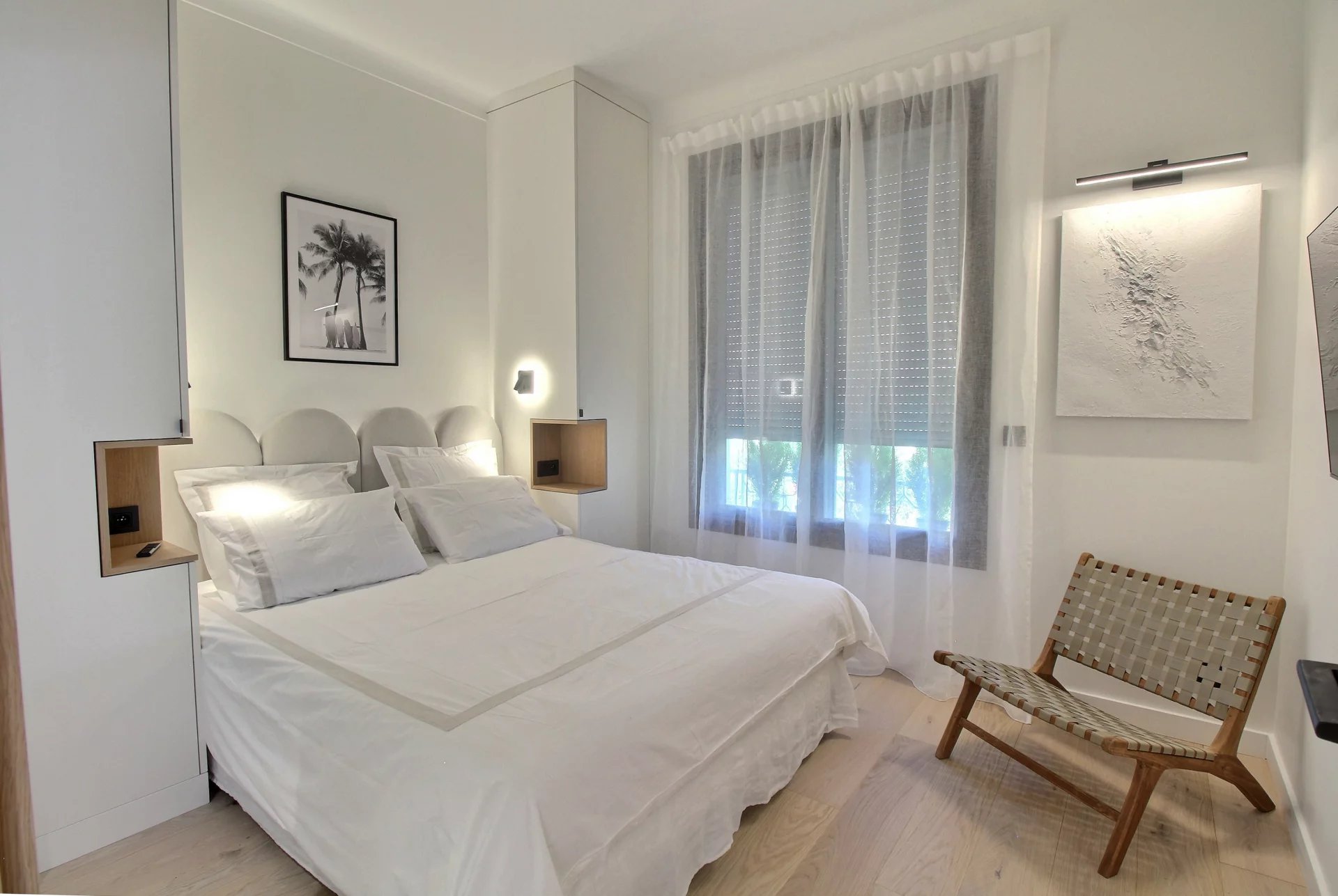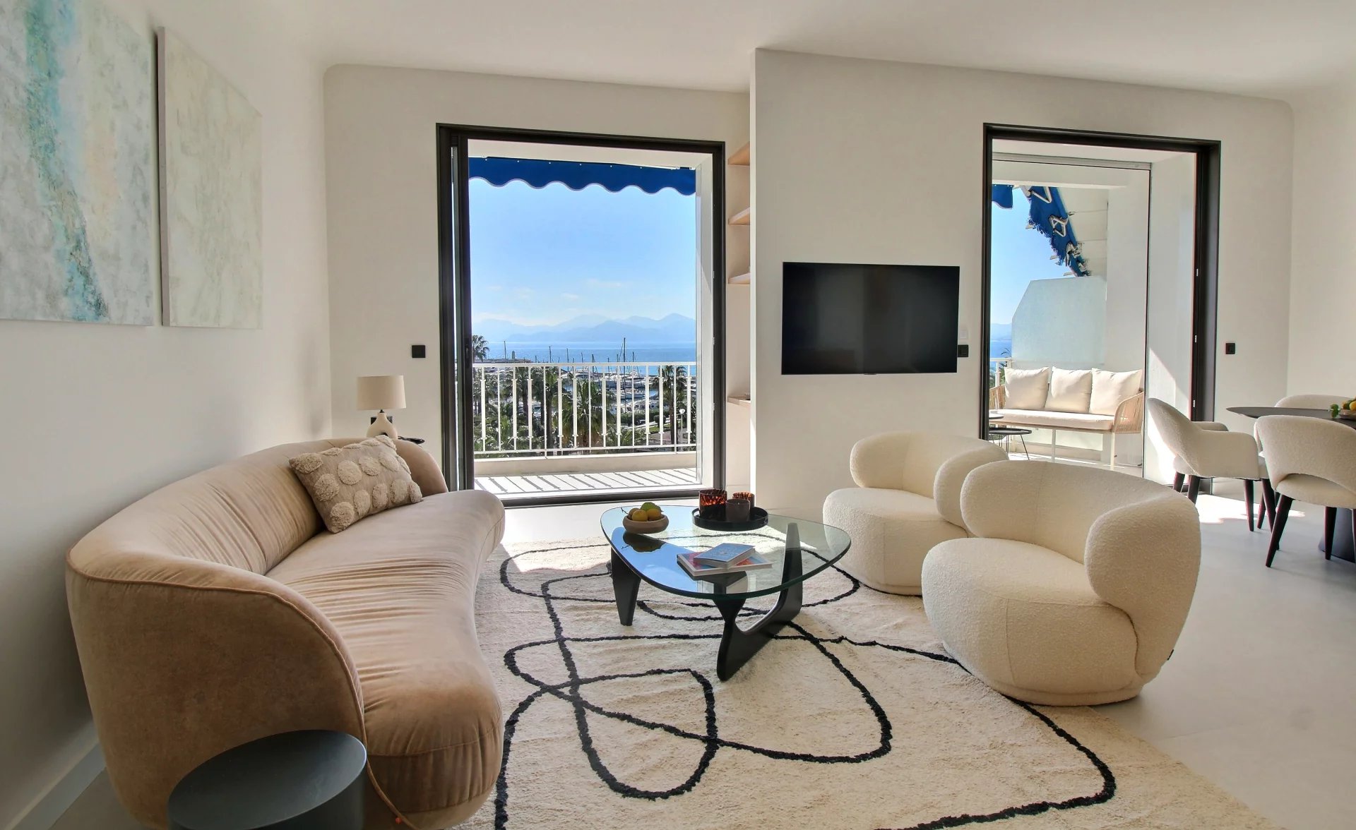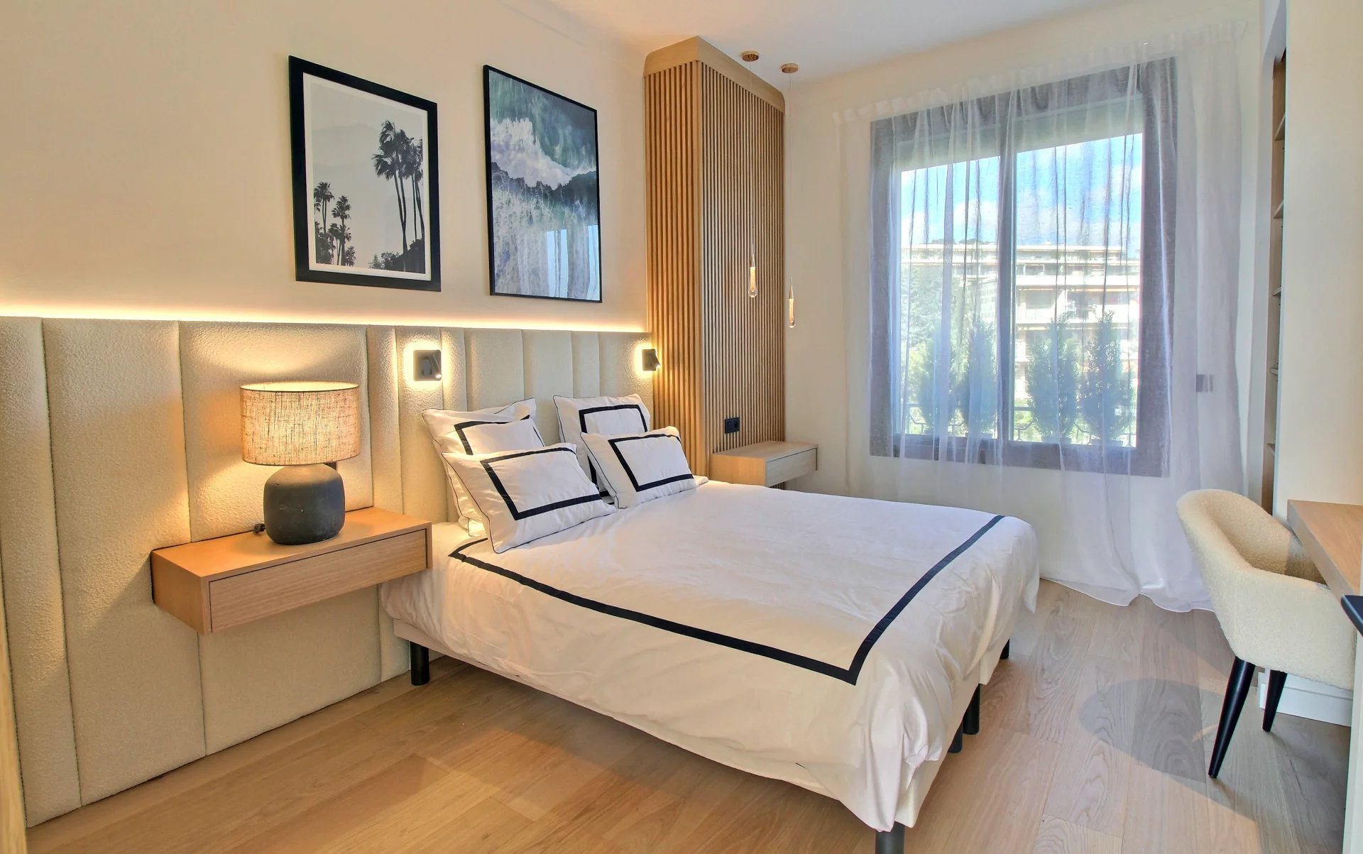 Entirely renovated with refined fittings and quality materials, it comprises 3 bedrooms en suite, a beautiful living room with open kitchen, a terrace with a view of the sea, the Esterel mountains and the Port Canto.