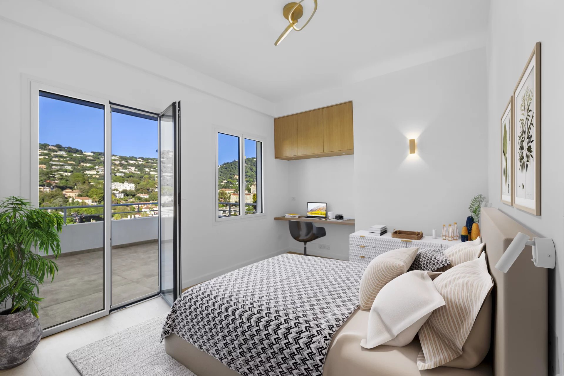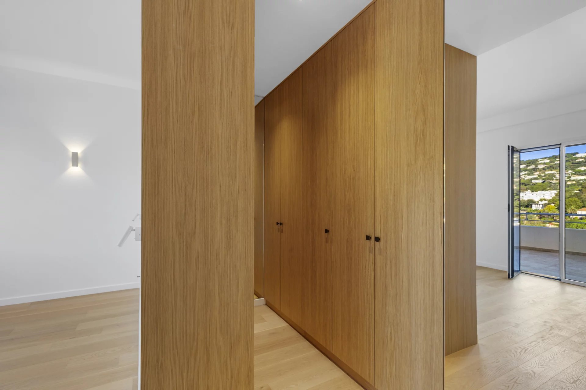 Immaculate accommodation begins with a superb entrance hall with cupboards, a large living room with dining room and an open fitted kitchen opening onto a spacious terrace offering an exceptional panoramic view. on the sea and the Esterel massif.