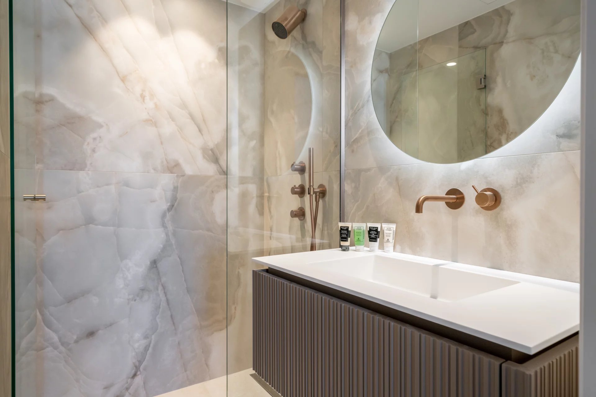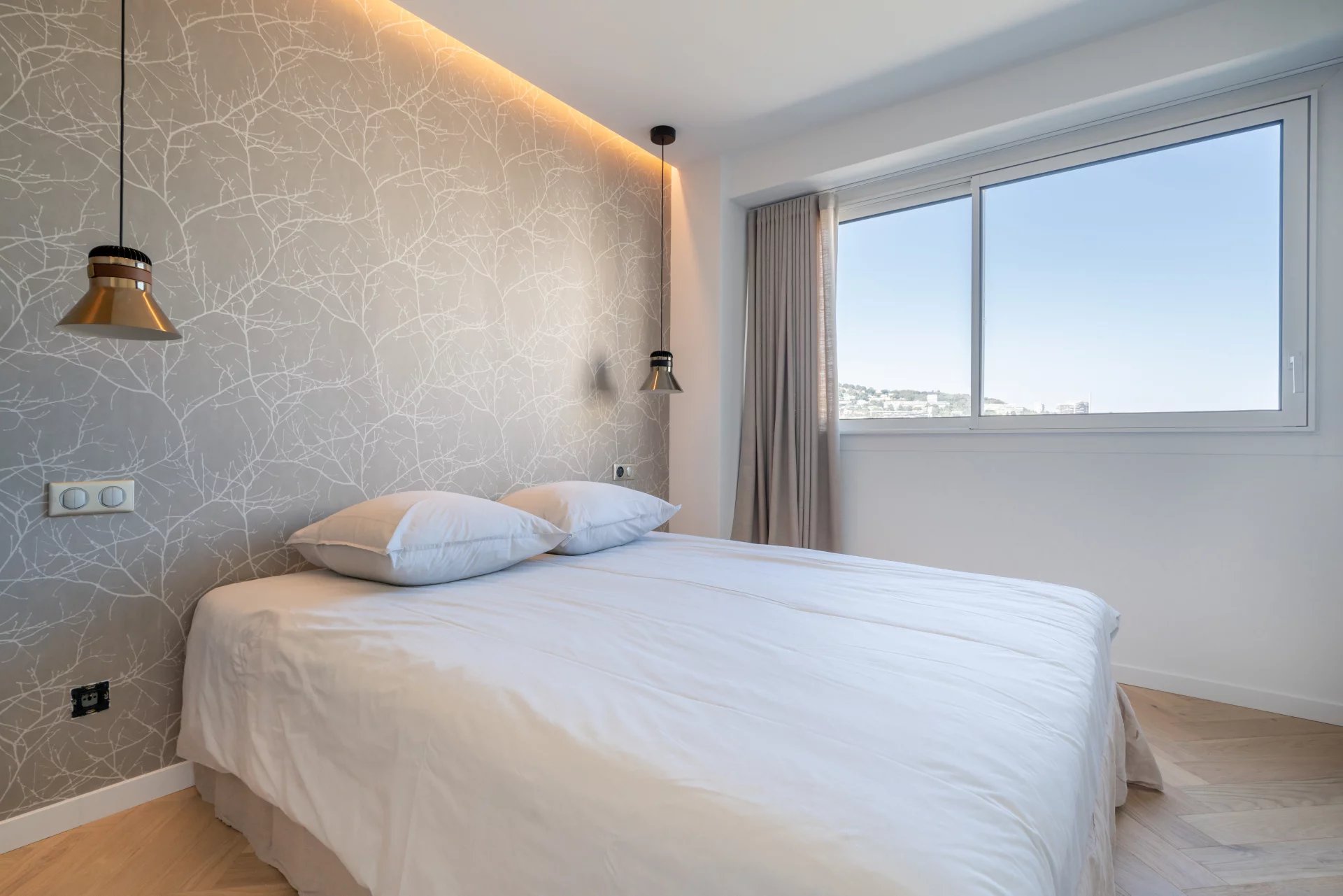 This luxuriously renovated 97 m2 apartment comprises a large, bright living room/kitchen opening onto a terrace facing the sea, a night area with 3 en suite bedrooms with their own shower rooms.