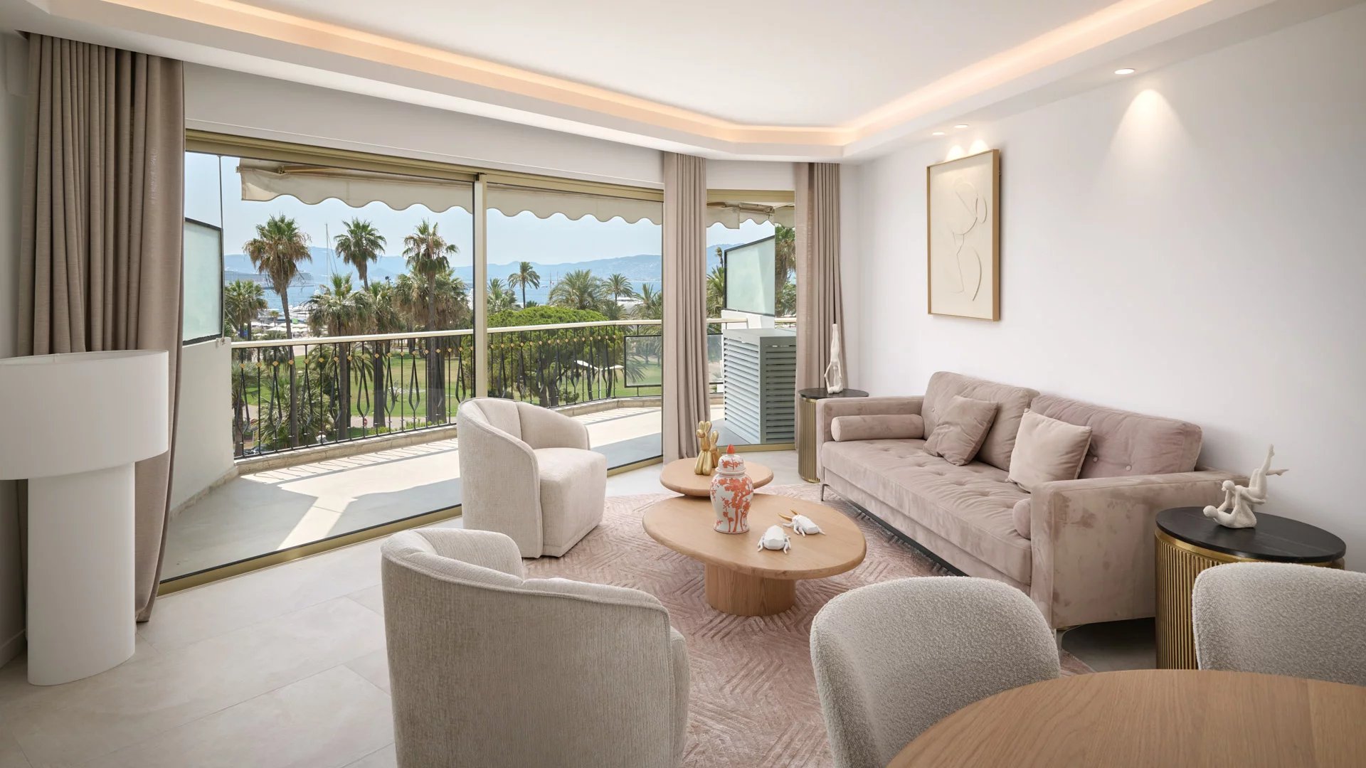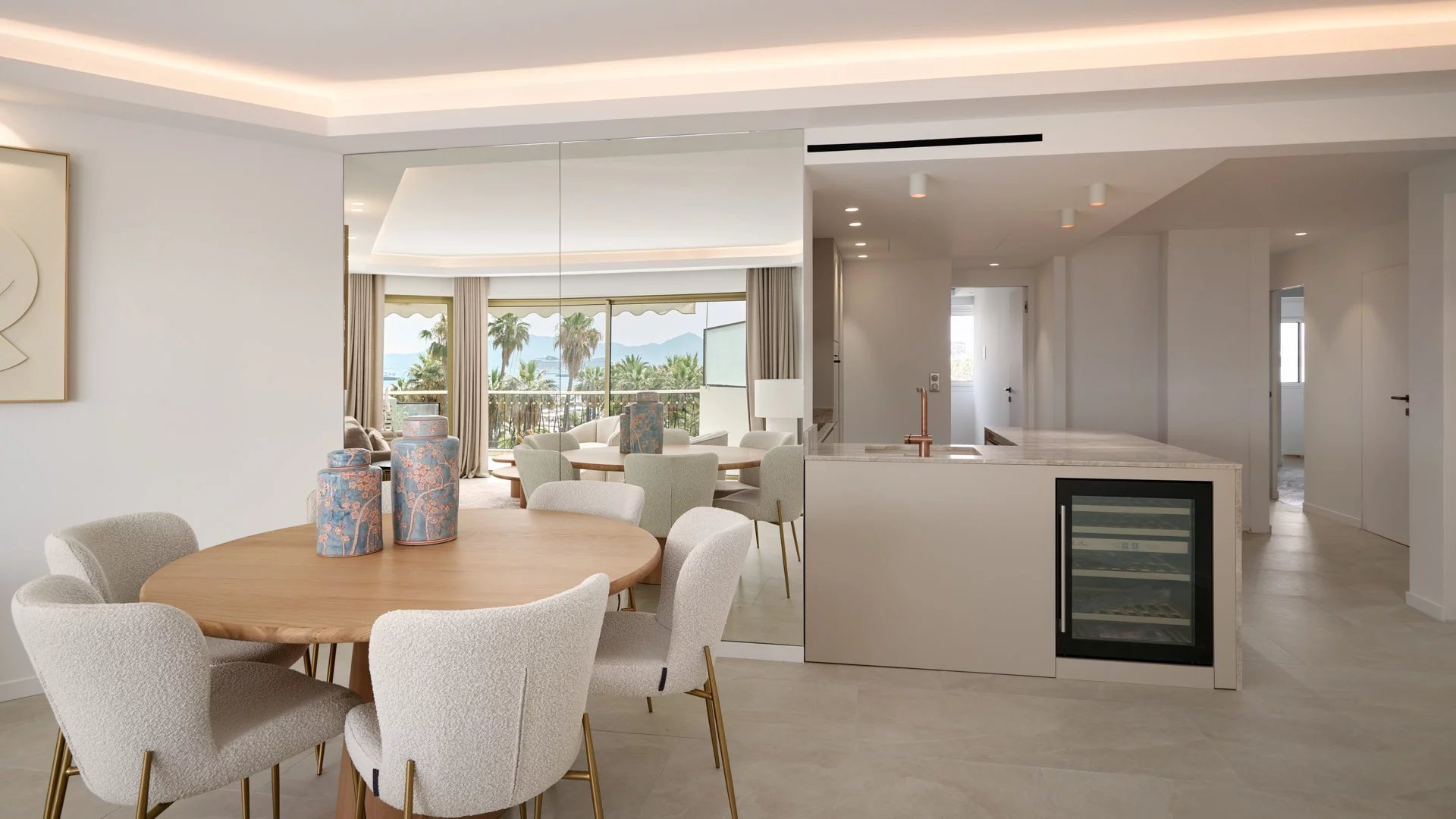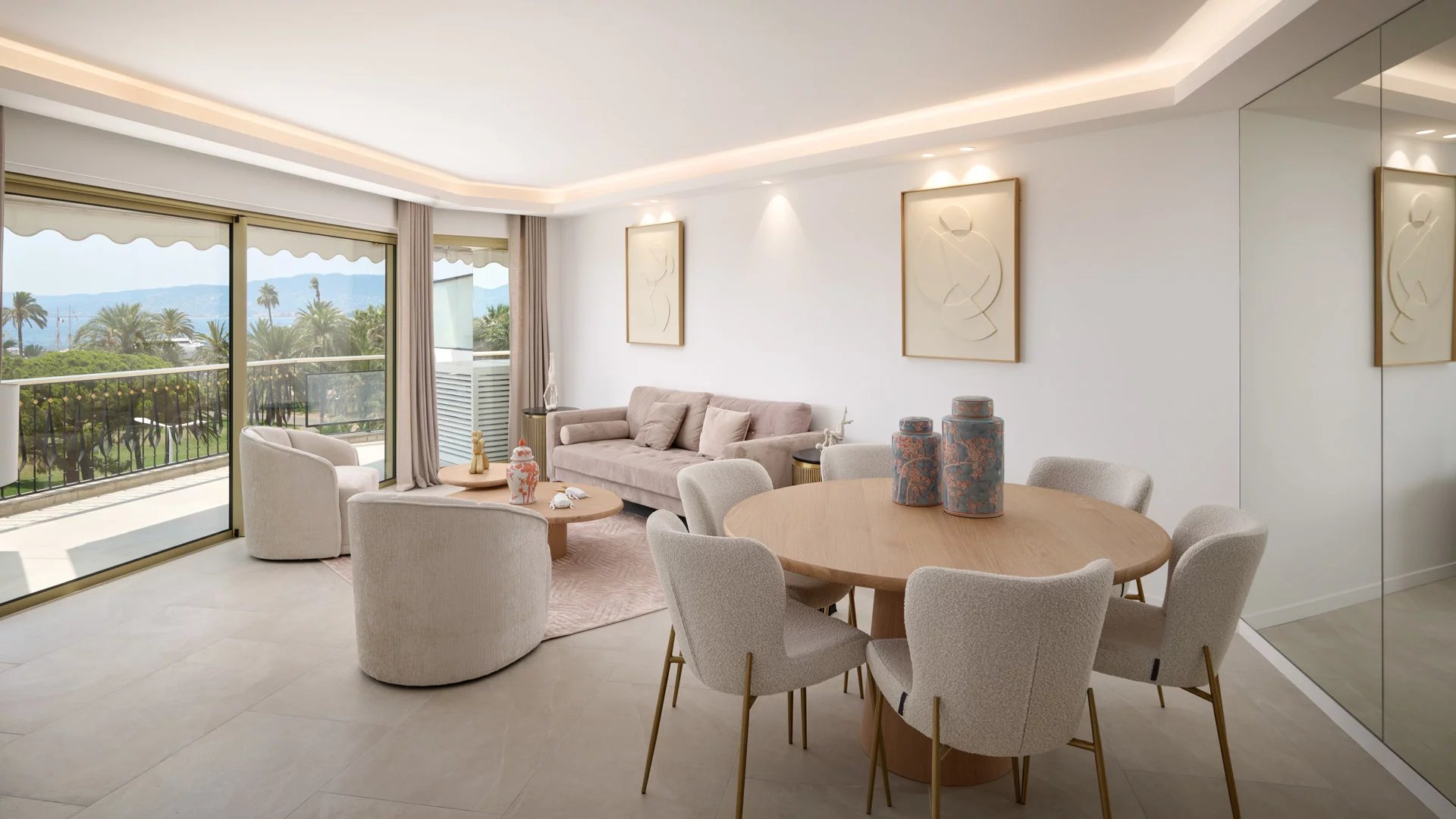 On a high floor in a well-known residence facing Port Canto, this magnificent sea-view flat has been completely renovated and decorated.