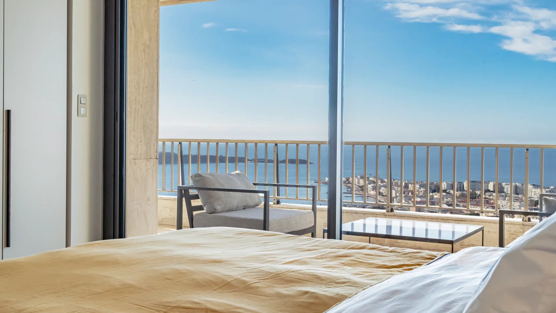 Spectacular views out over the Mediterranean sea……modern apartment with 3 suites bathed in light.