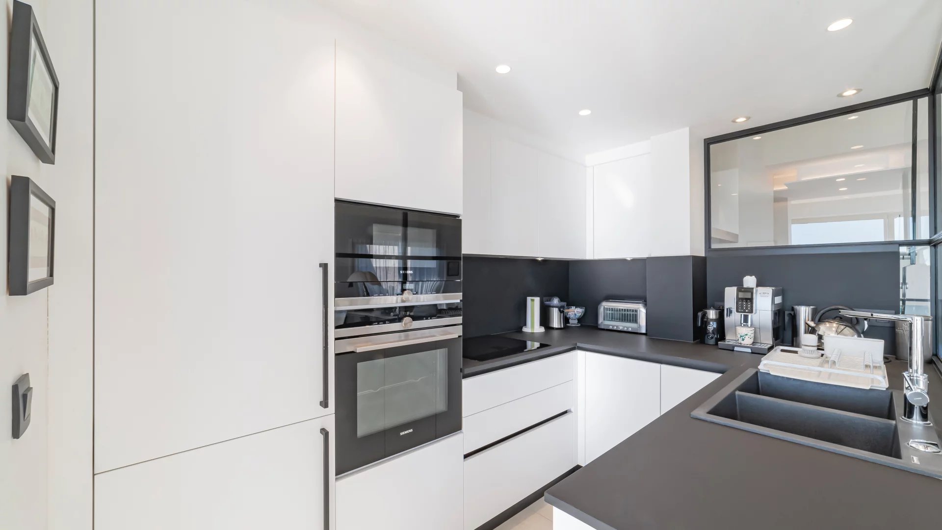 Magnificent, fully renovated duplex penthouse located within walking distance of the Croisette and shops, with a beautiful view of the sea and the Lérins islands.